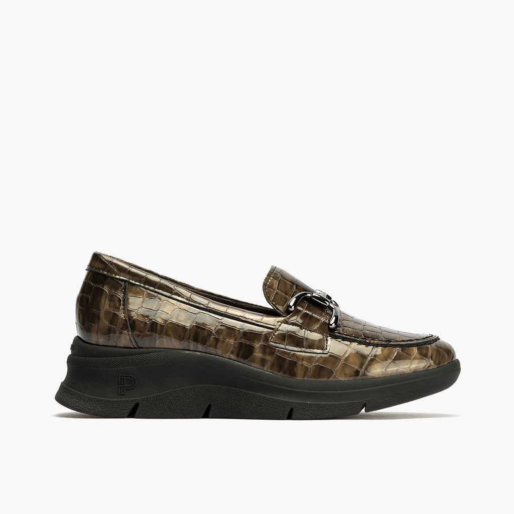 Mocasin Trícolor en Charol de mujer color cuero/piedra