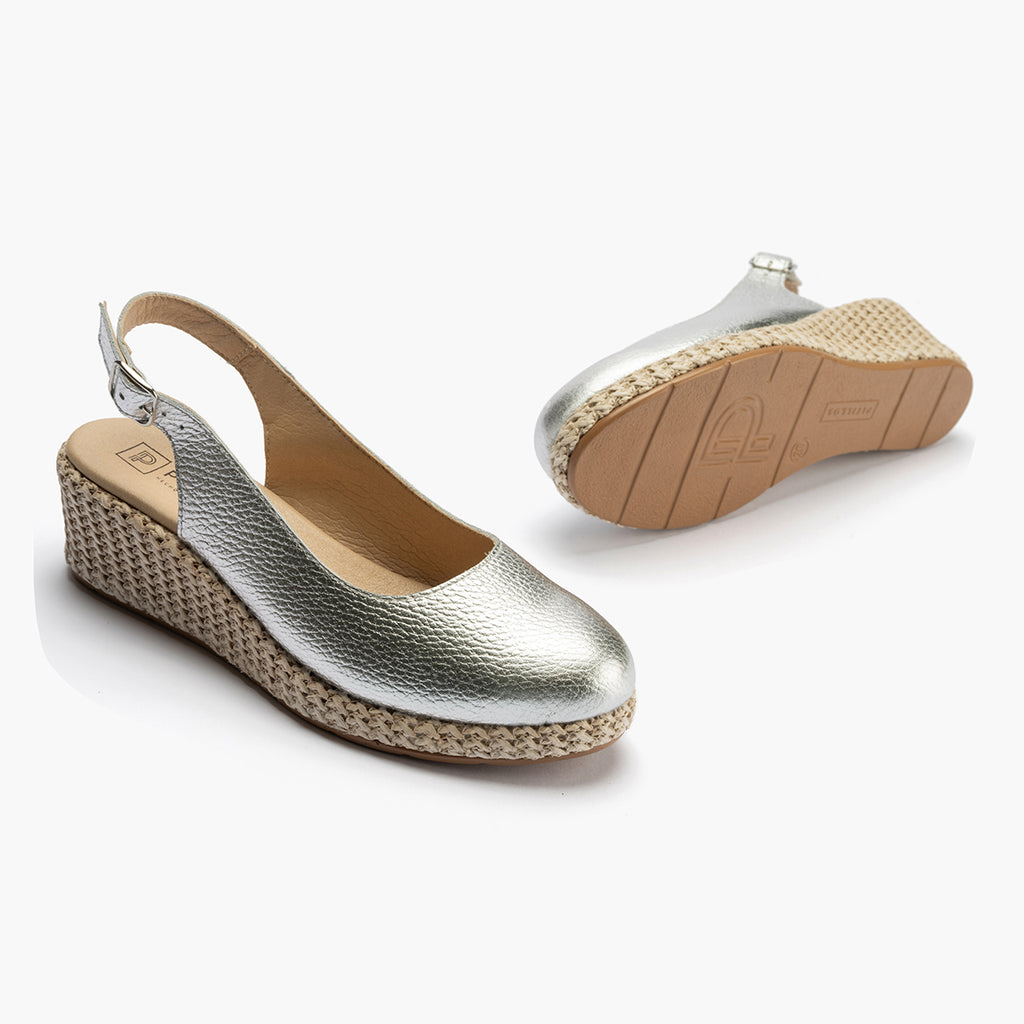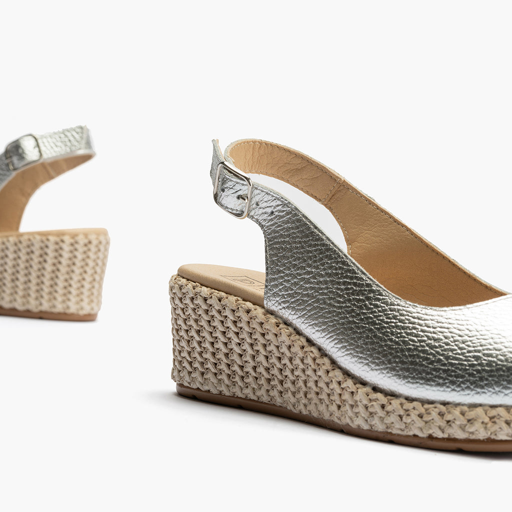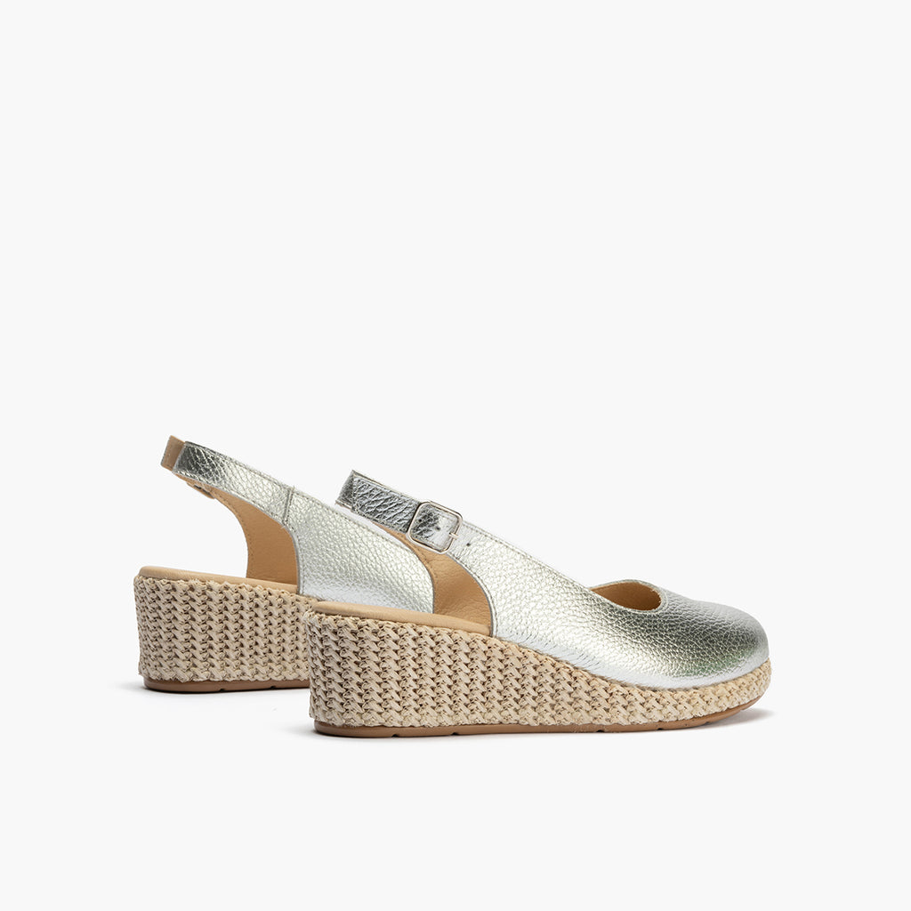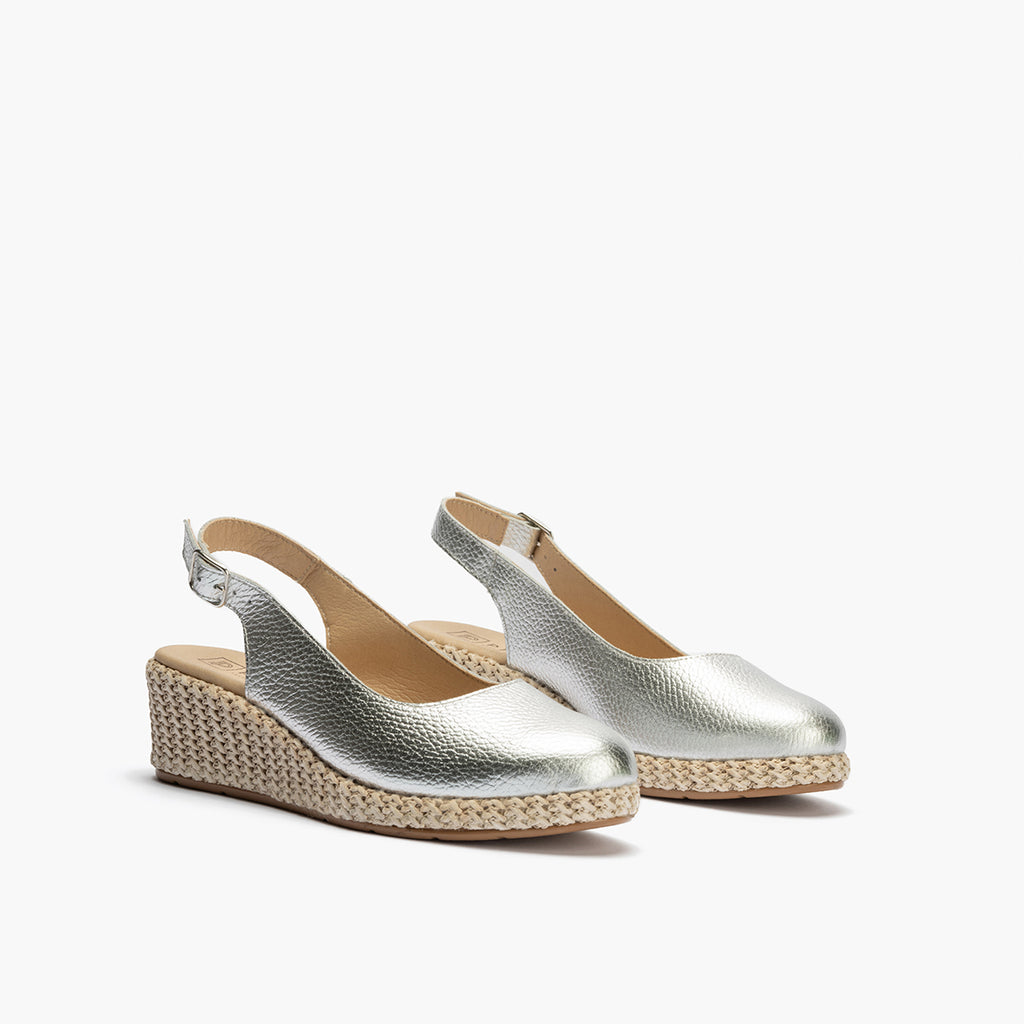 Valenciana con cuña salon mujer con hebilla en laminado PLATA