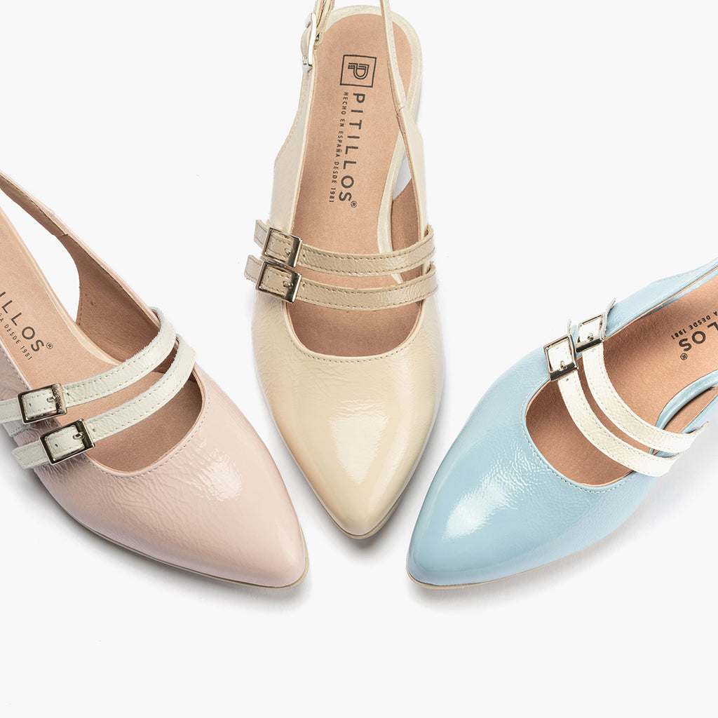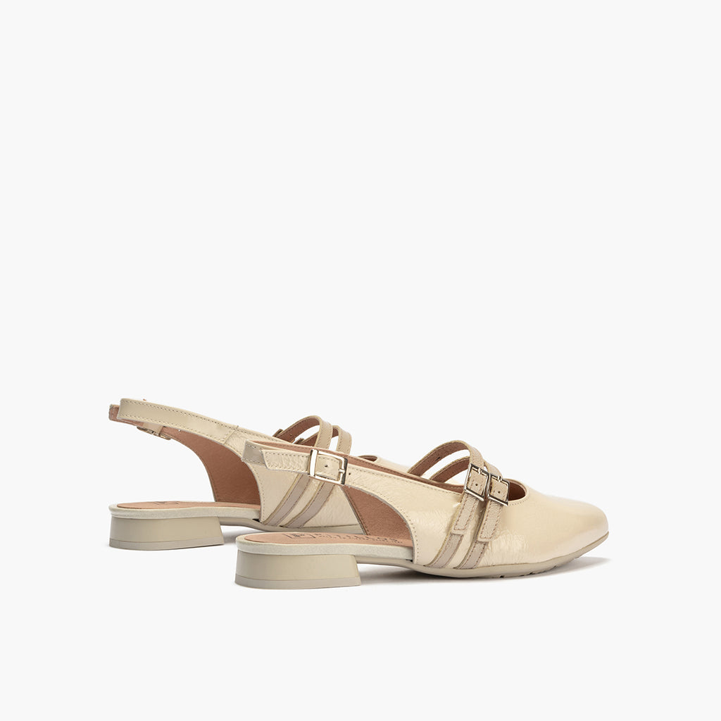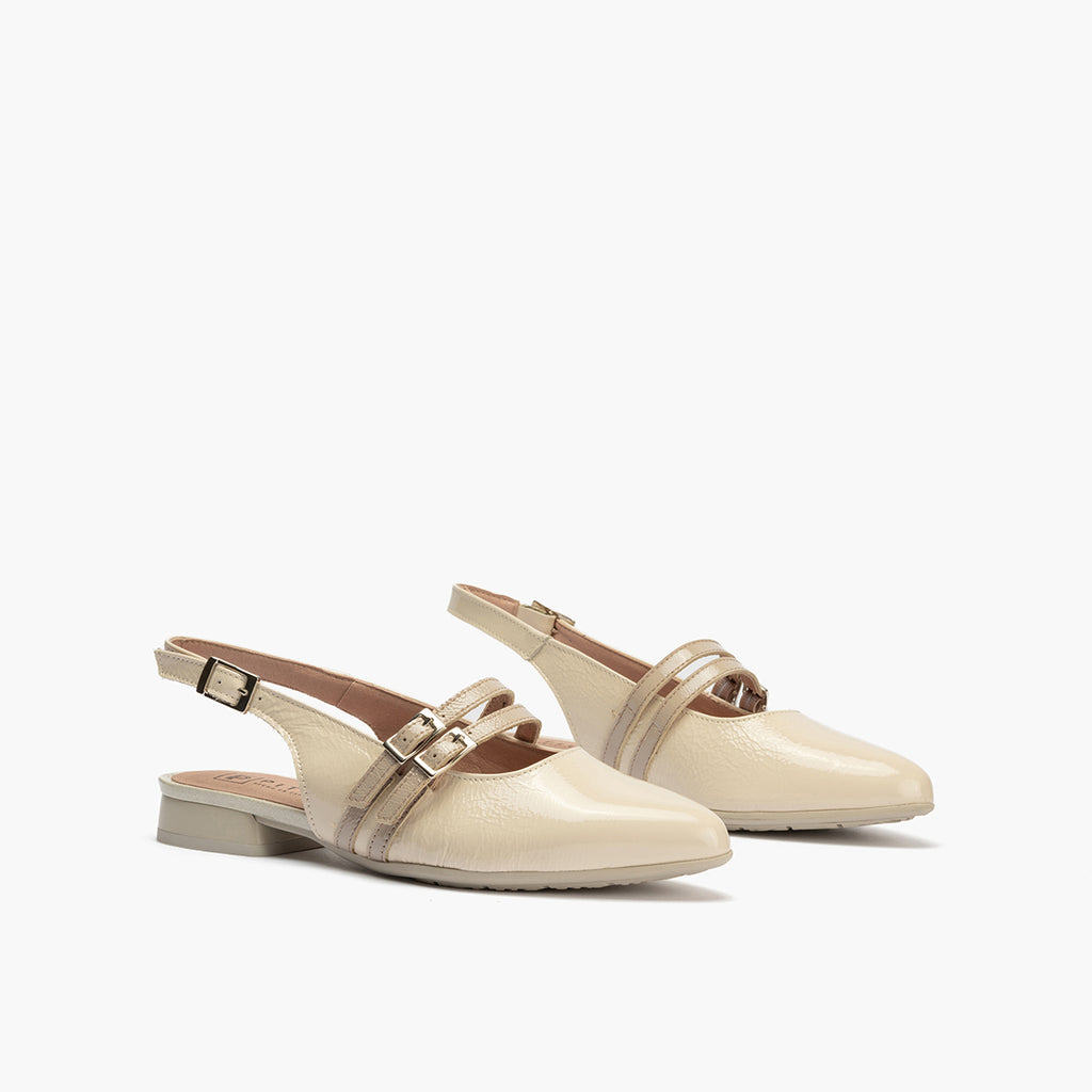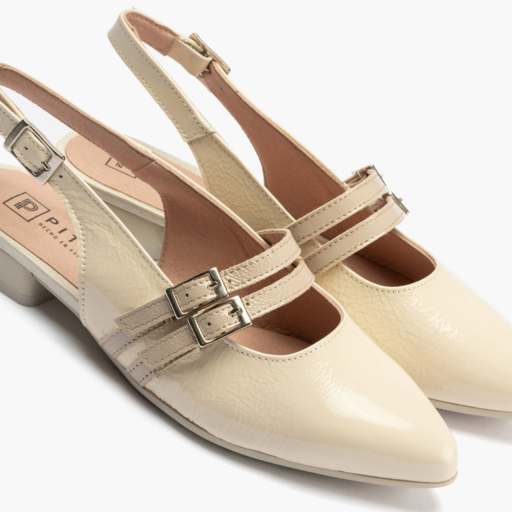 Mercedes con doble correa mujer con hebilla en piel charol CREMA