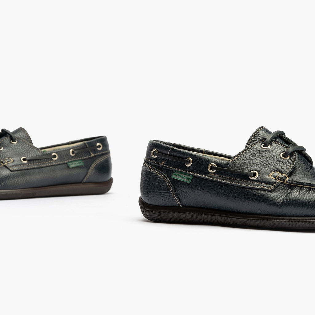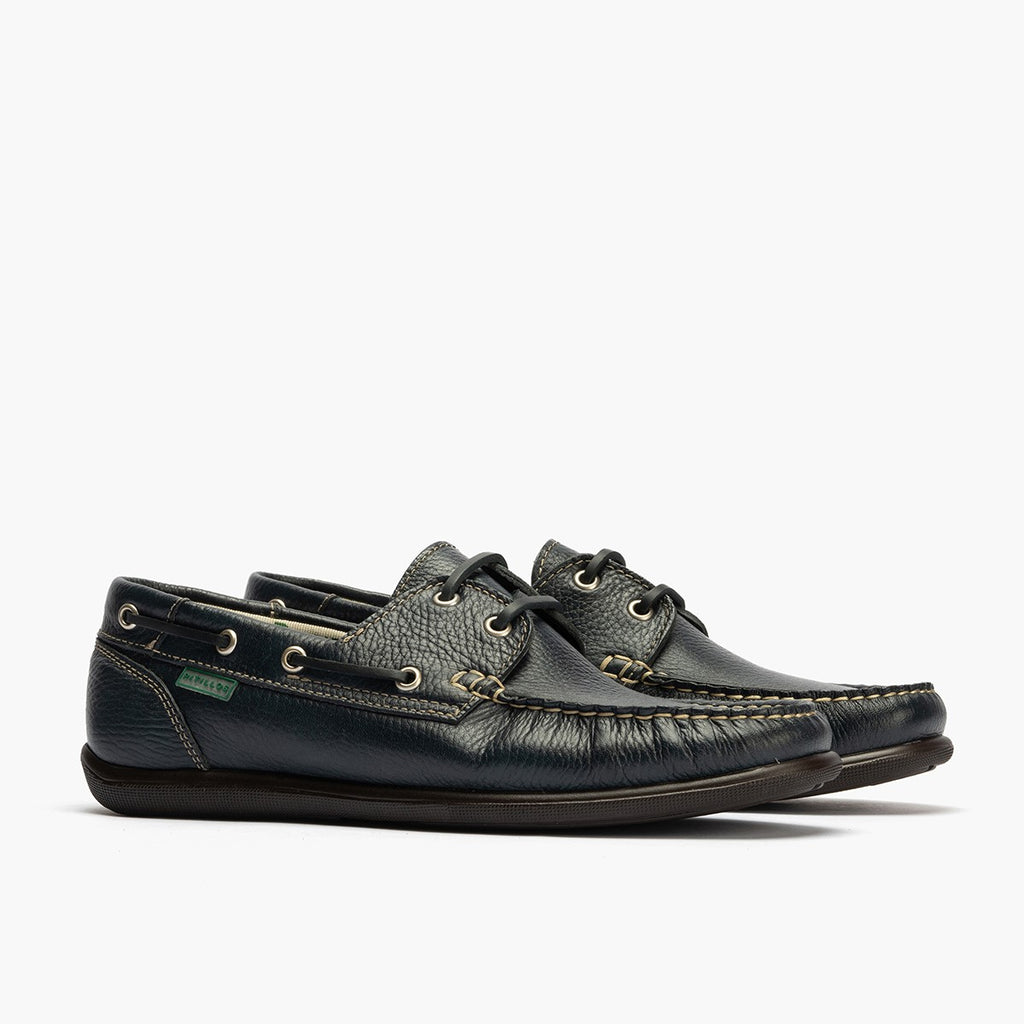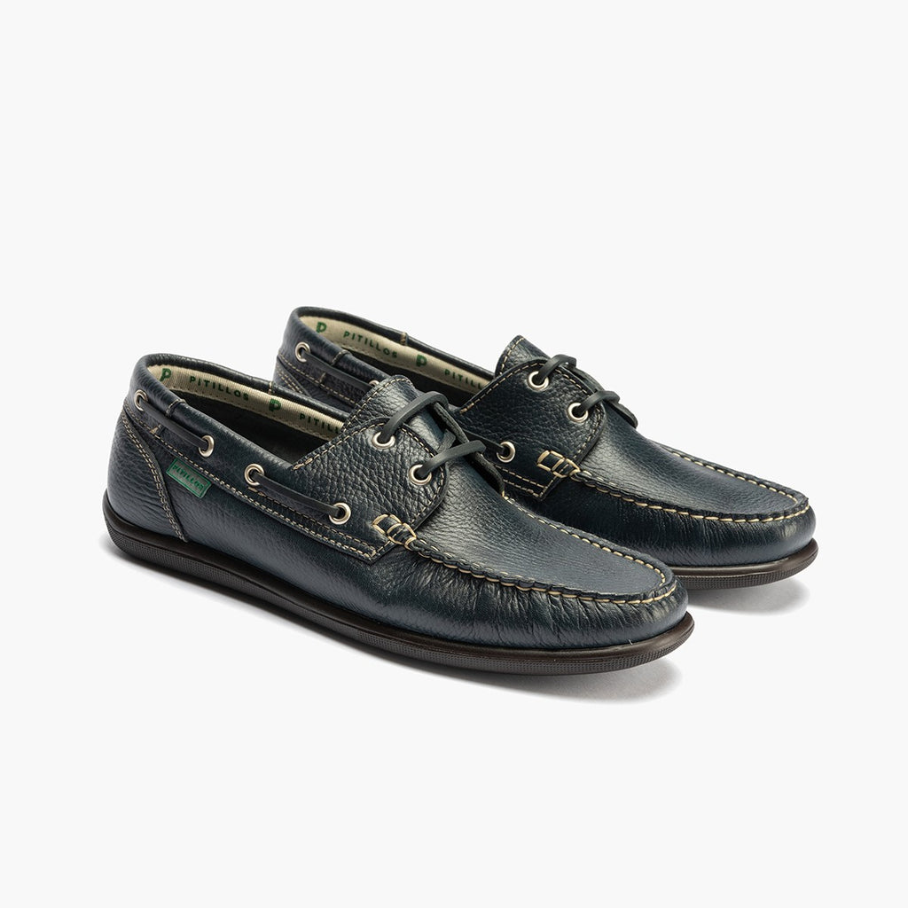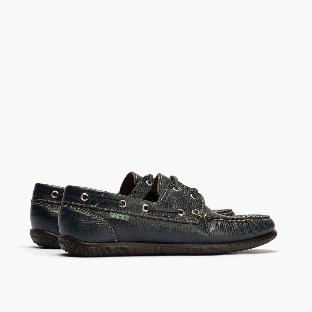 Náutico piel hombre AZUL: Náutico azul marino en piel vacuno, con cierre de cordones y puntera afilada para una estética náutica moderna