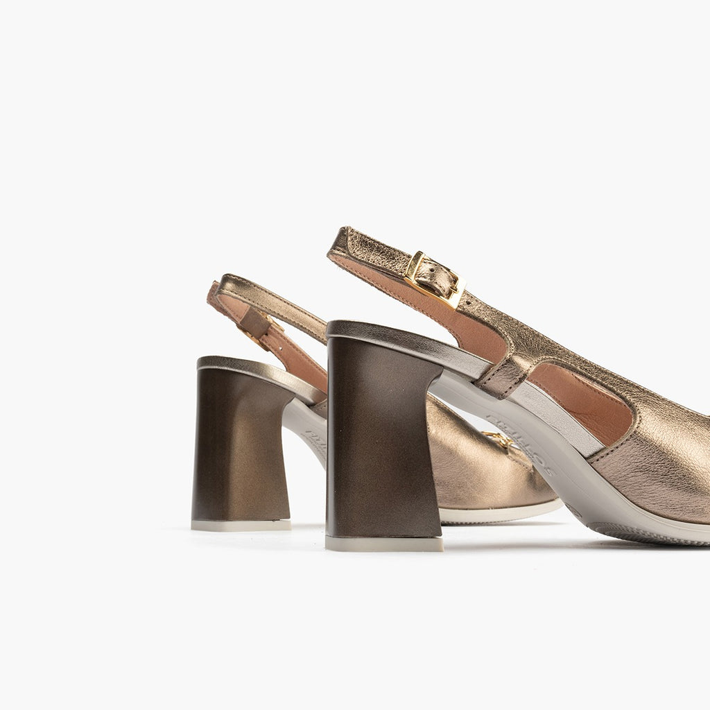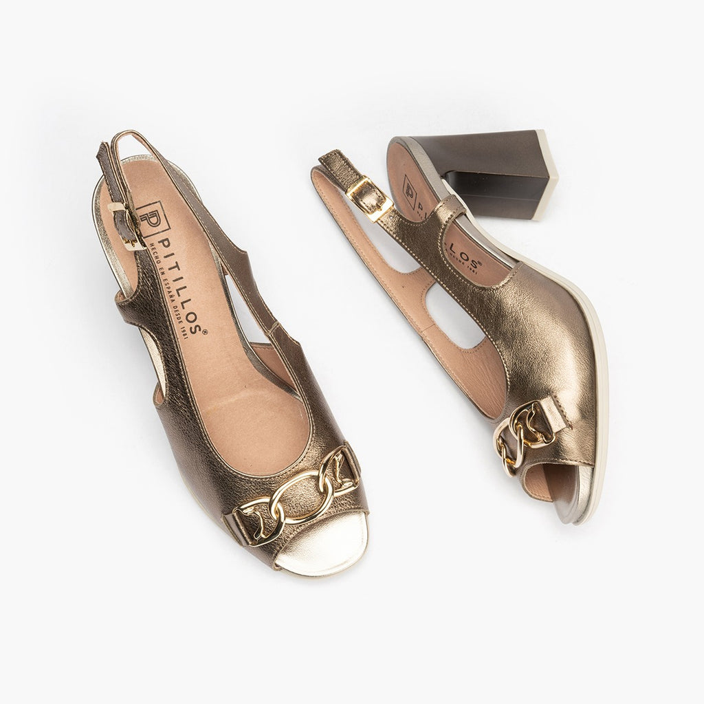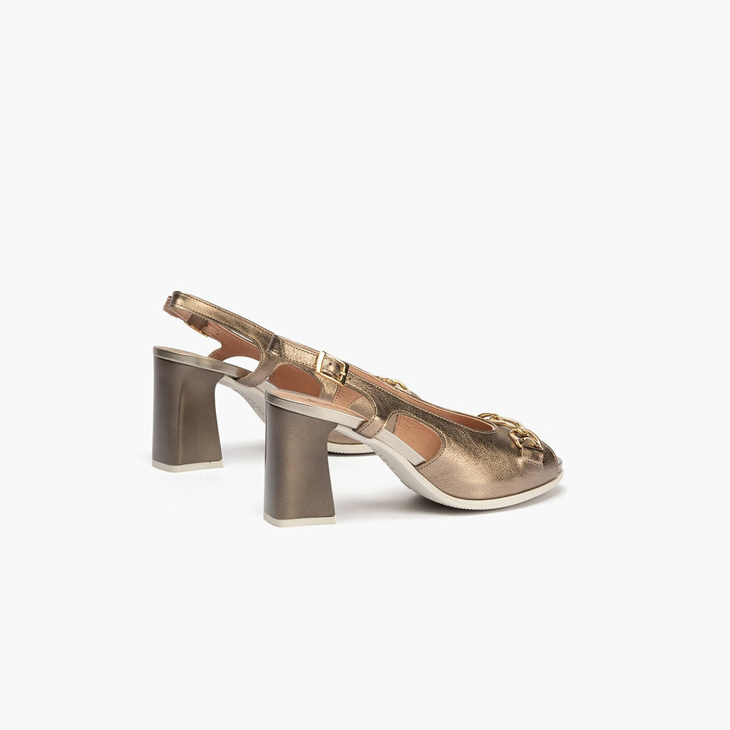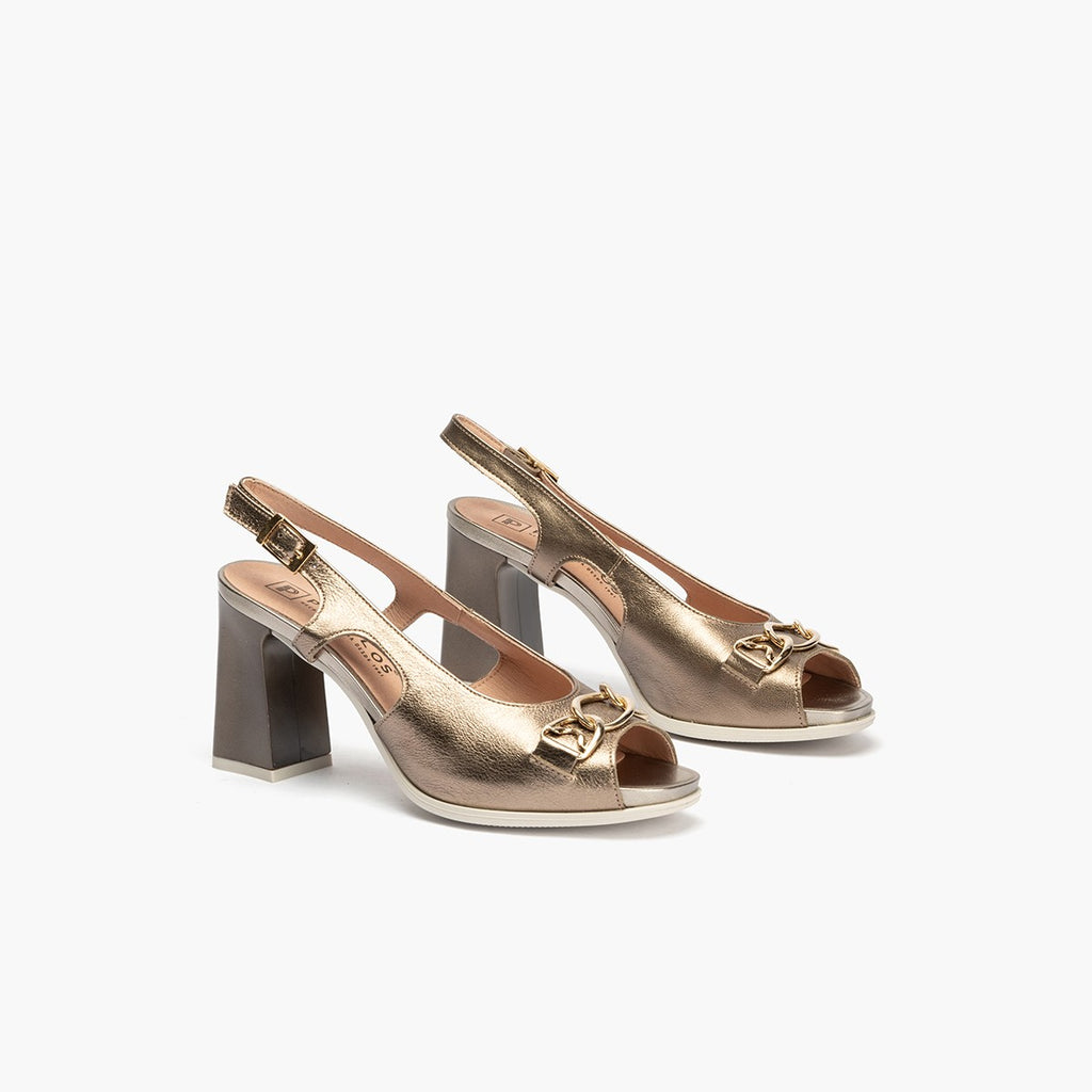 Sandalia tacón alto mujer laminado adorno hebilla BRONCE