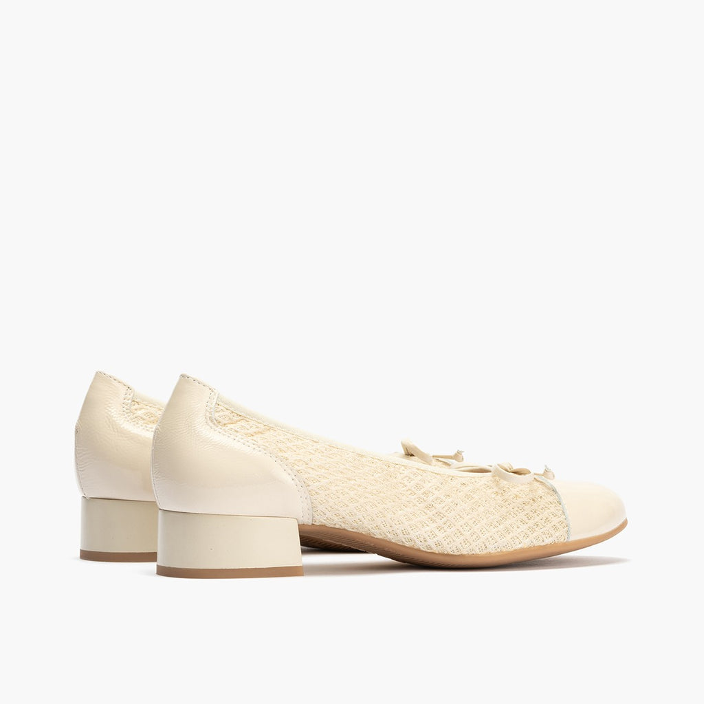 Zapatos de salón de mujer destalonado en piel tacón bajo CREMA: Estos zapatos de salón destalonados en color crema están confeccionados en piel, ofreciendo un estilo versátil y elegante para cualquier ocasión.