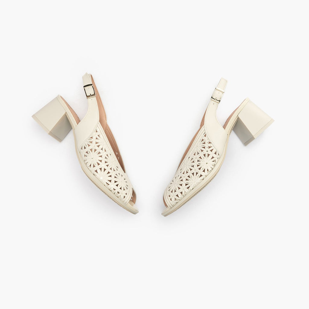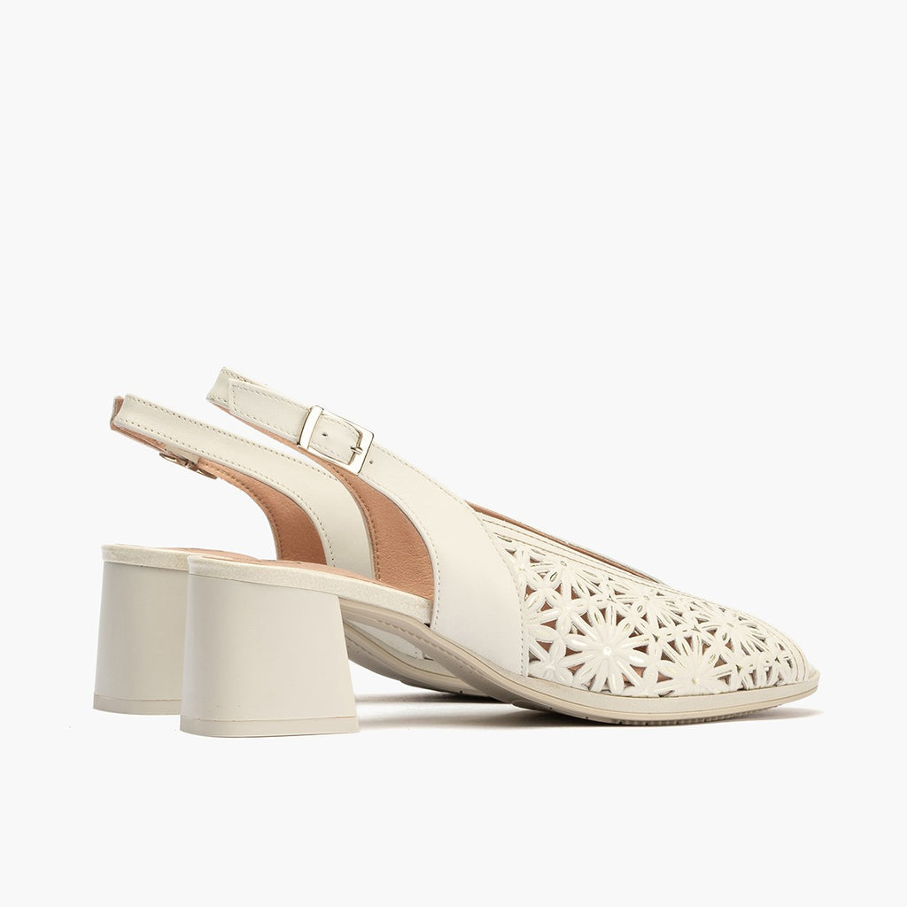 Sandalia tacón mujer napa picados blanco: Detalles sofisticados y estilo en unas sandalias de tacón para mujer con acabado de napa picada en blanco, añadiendo un toque de textura y elegancia a tu look.
