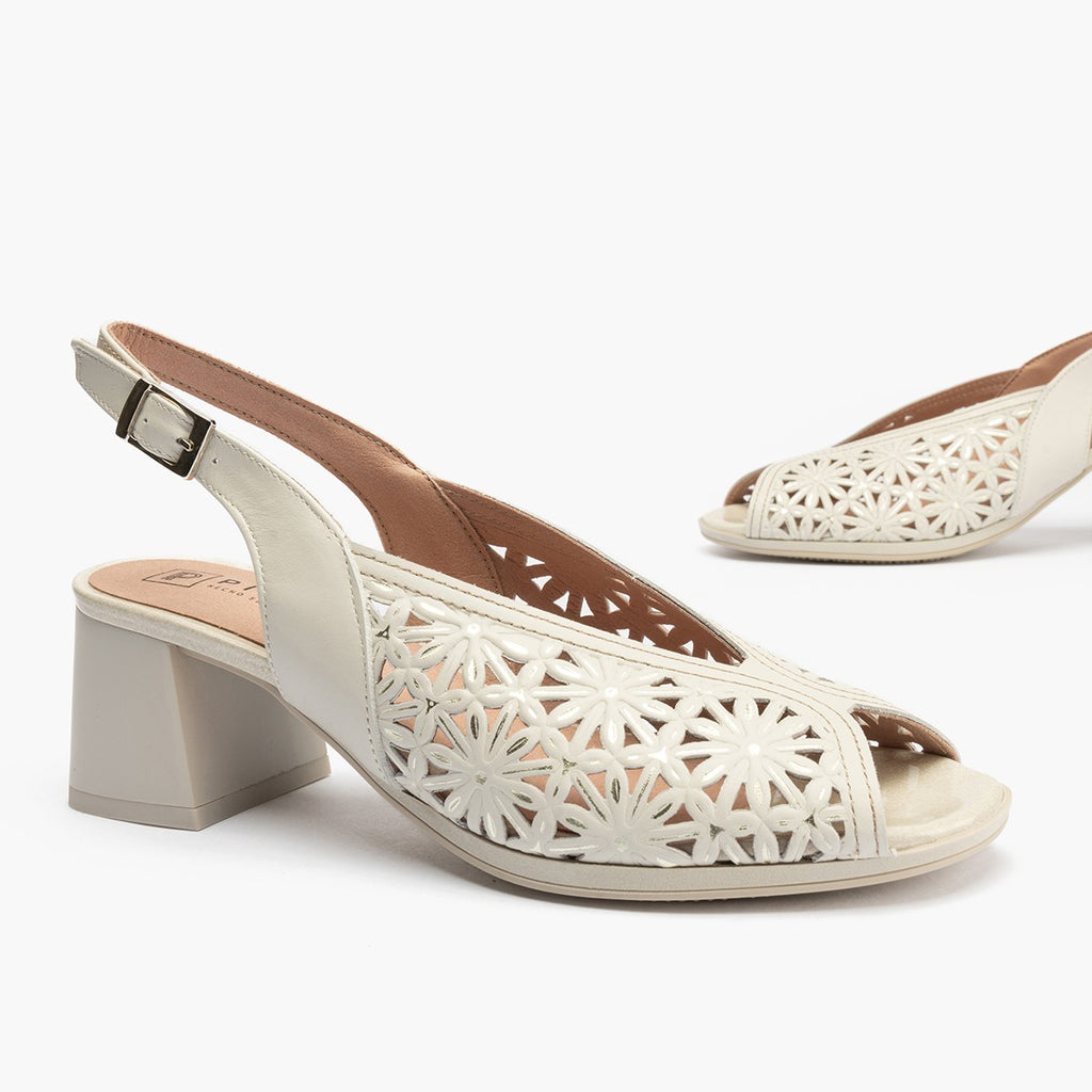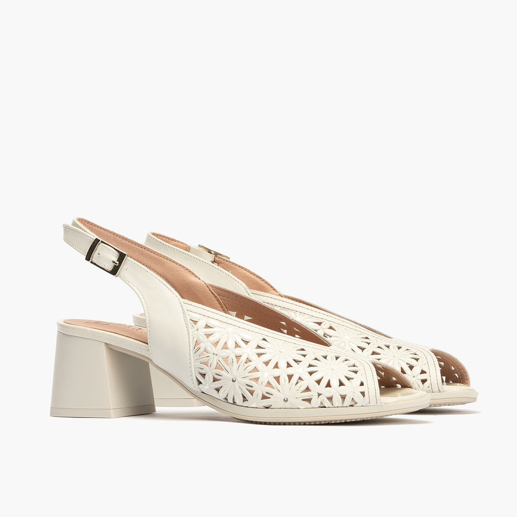 Sandalia tacón mujer napa picados BLANCO