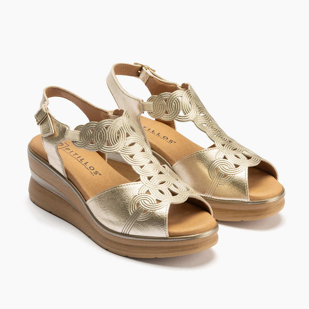 Sandalia plataforma mujer con hebilla en piel laminado ORO