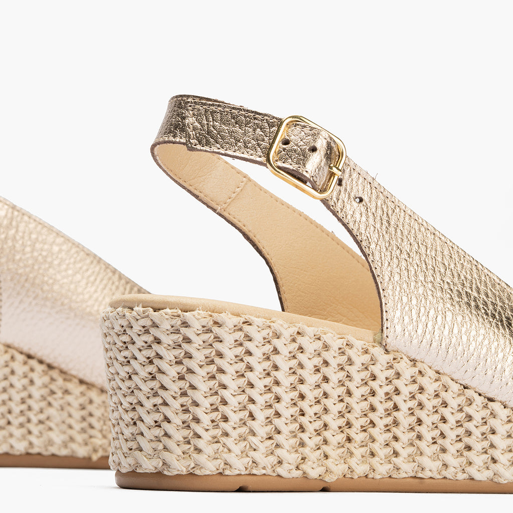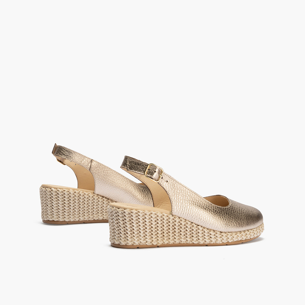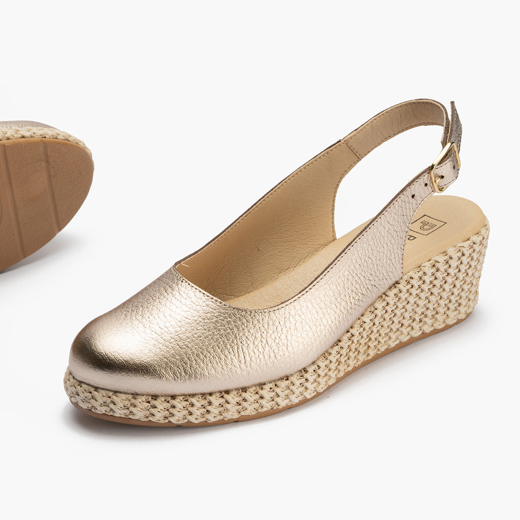 Valenciana con cuña salon mujer con hebilla en laminado ORO