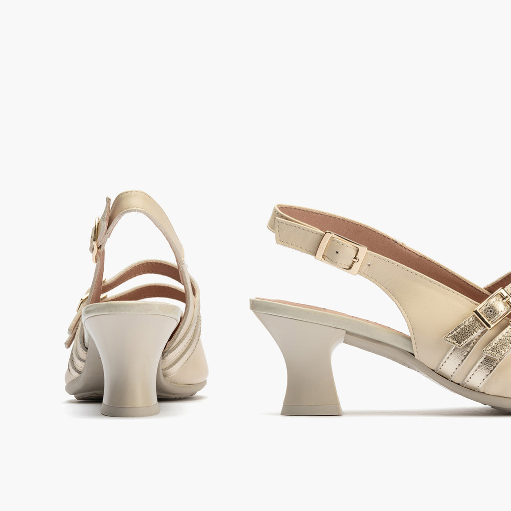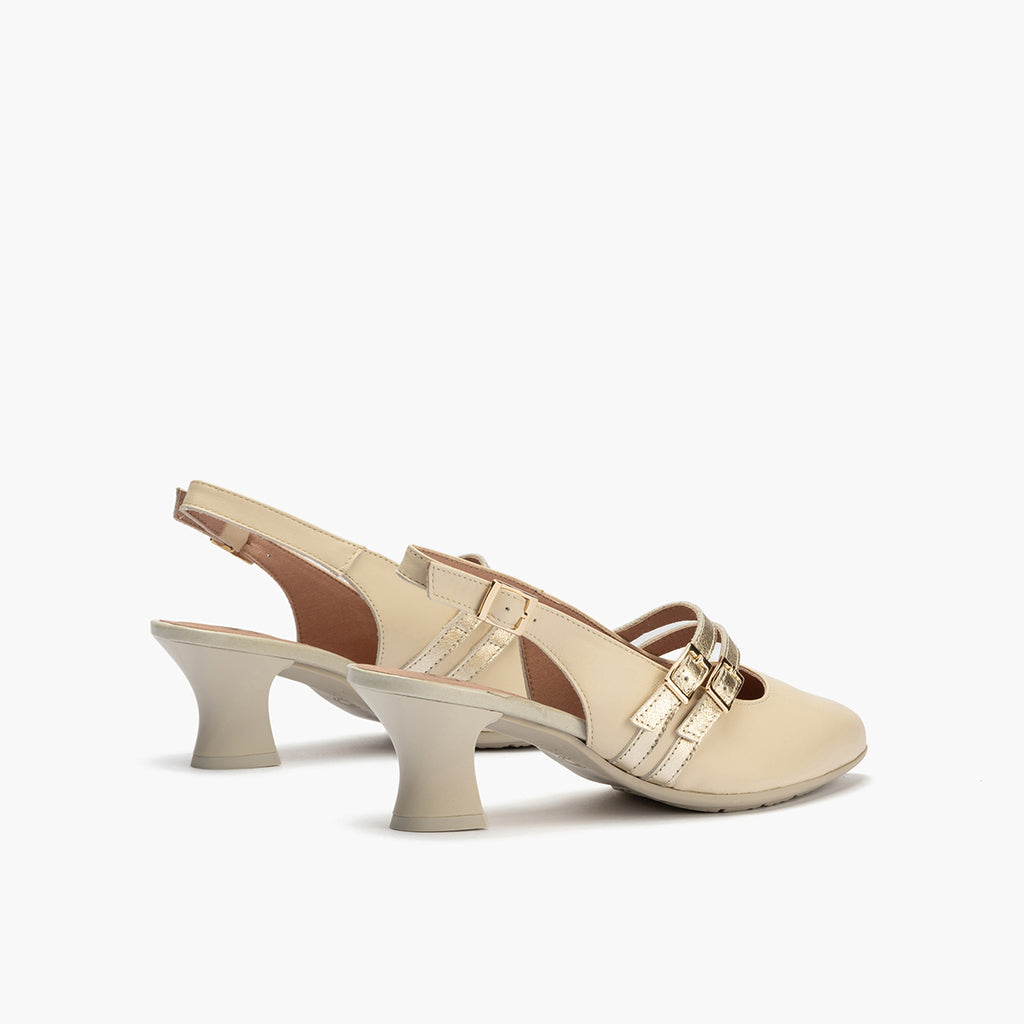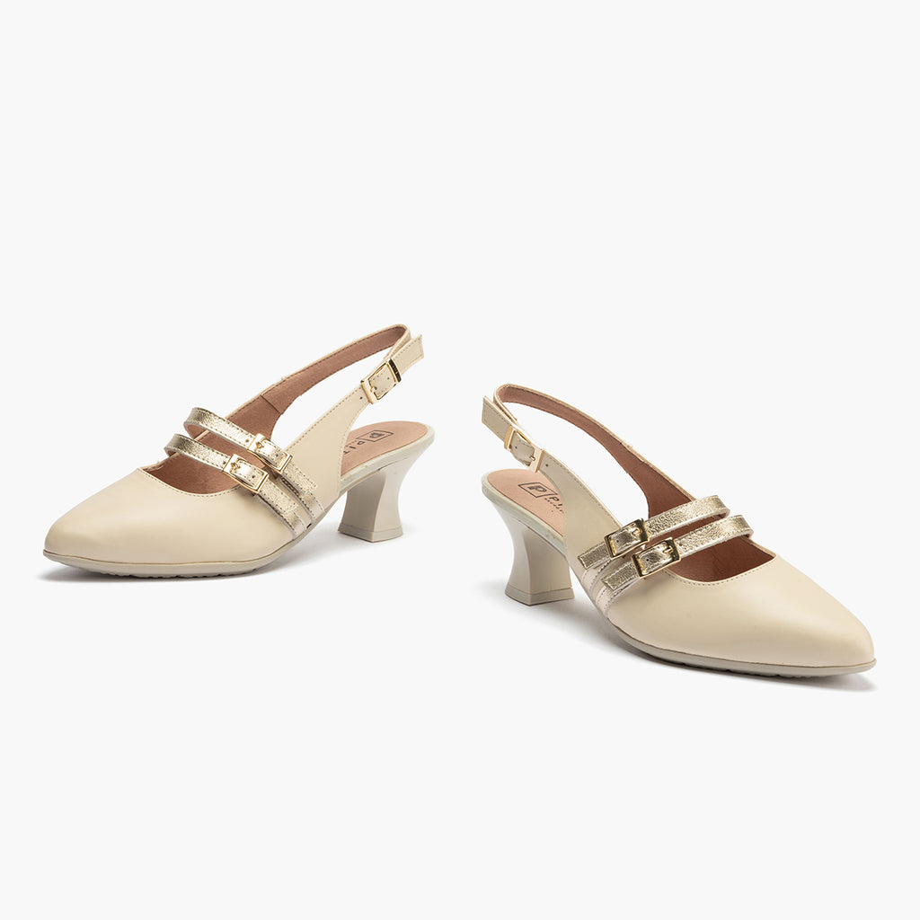 Mercedes con doble correa y talon abierto mujer con hebilla en piel combinada CREMA