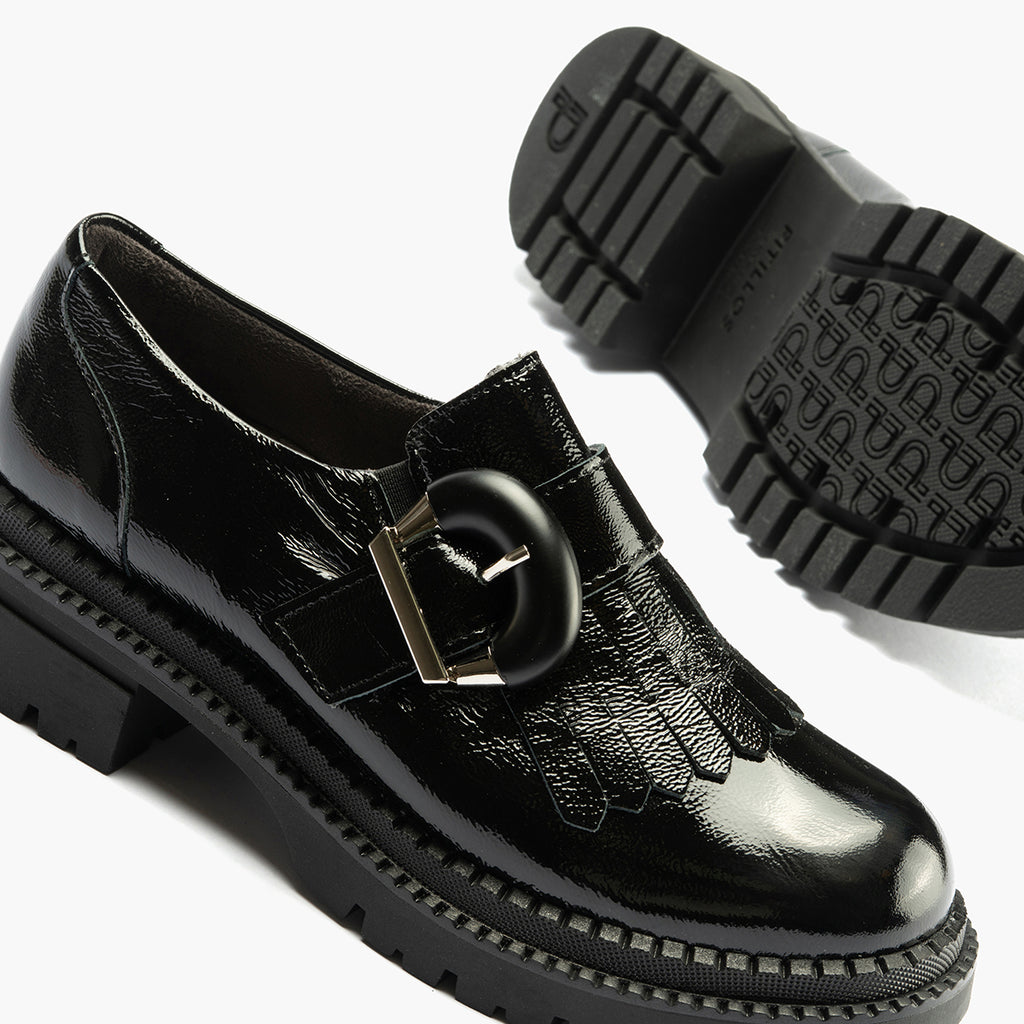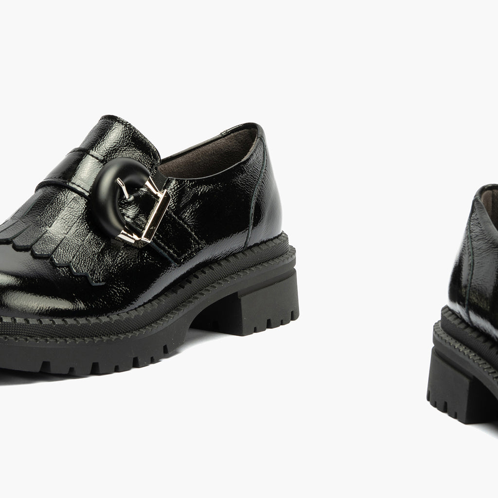 Abotinado en Charol de mujer color negro: Refinado, ligero y con mucha personalidad.
