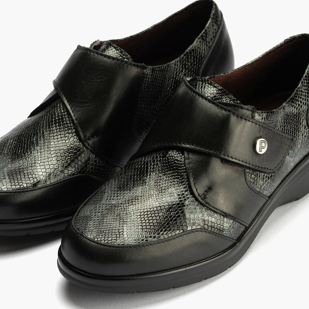 Blucher Piel con velcro de mujer color negro: Tu mejor compañero desde la mañana hasta la noche.