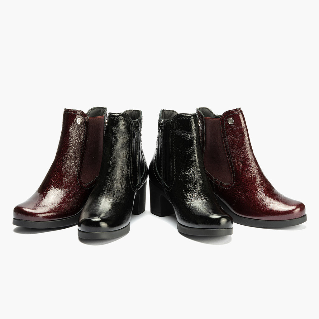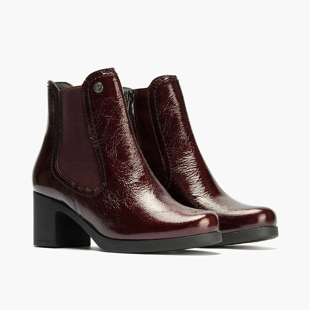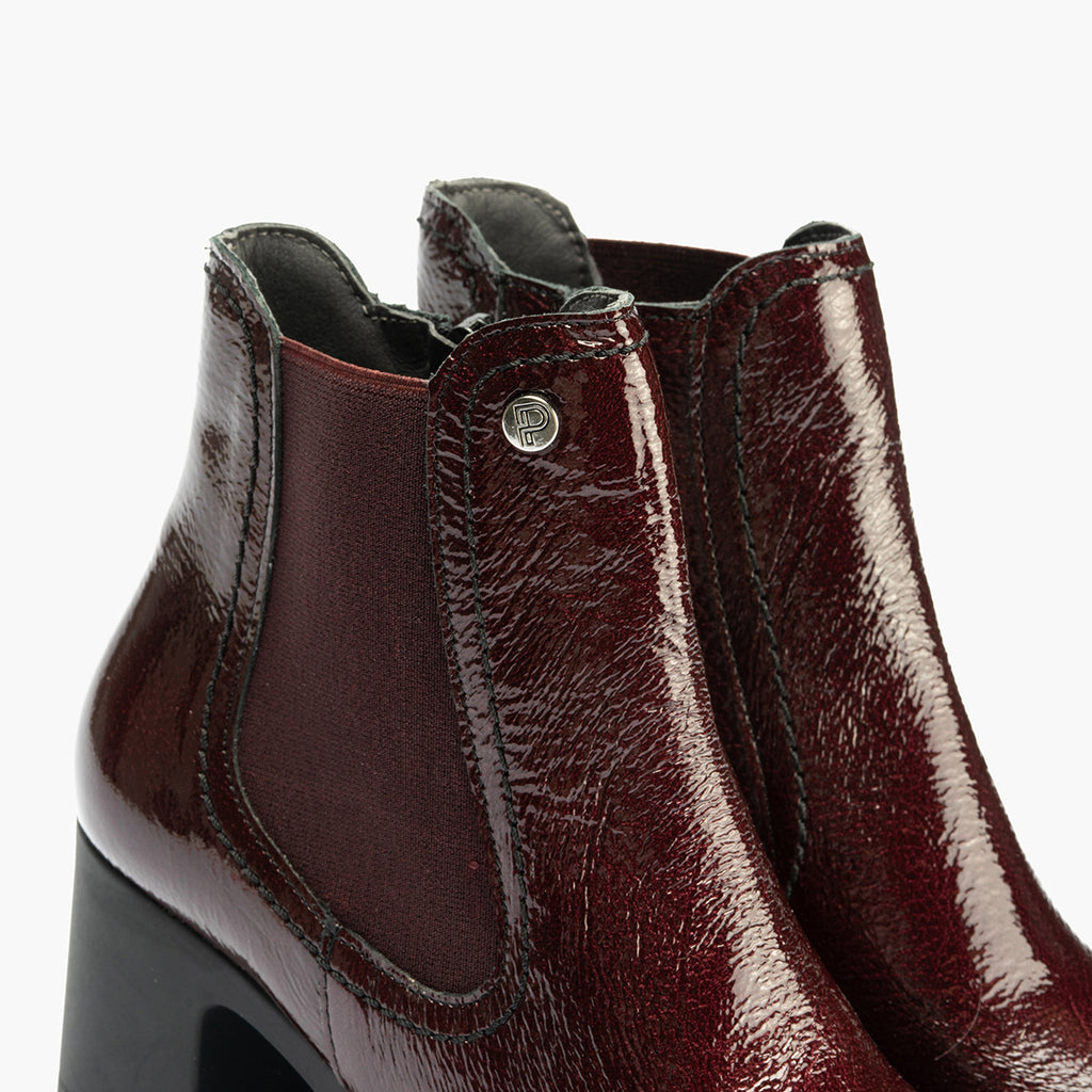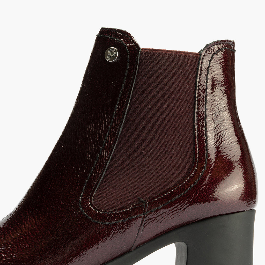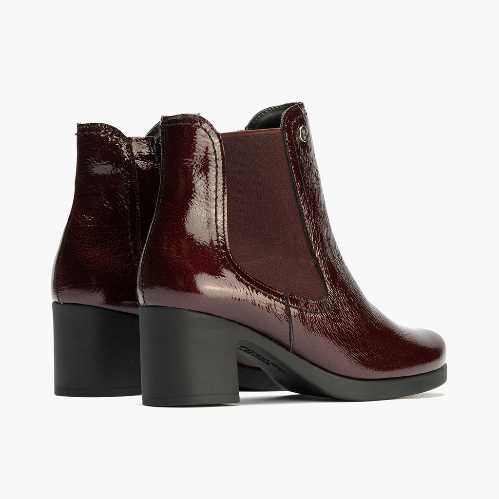 Botín Chelsey en Charol con elásticos de mujer color burdeos