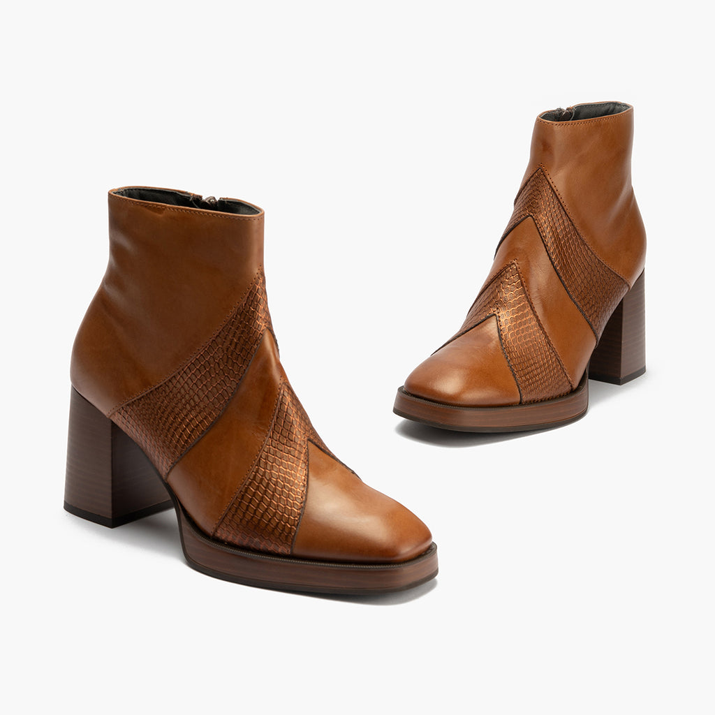 Botín Combinado con tacón alto de mujer color cuero: A la altura de cualquier ocasión.