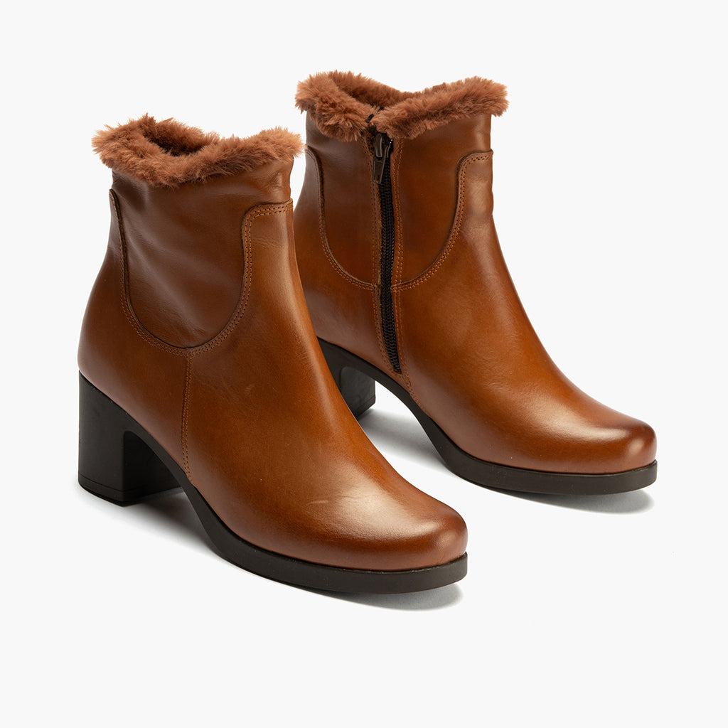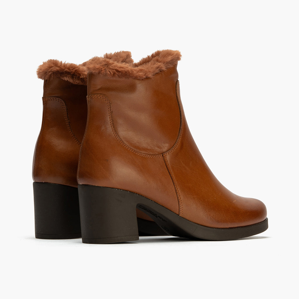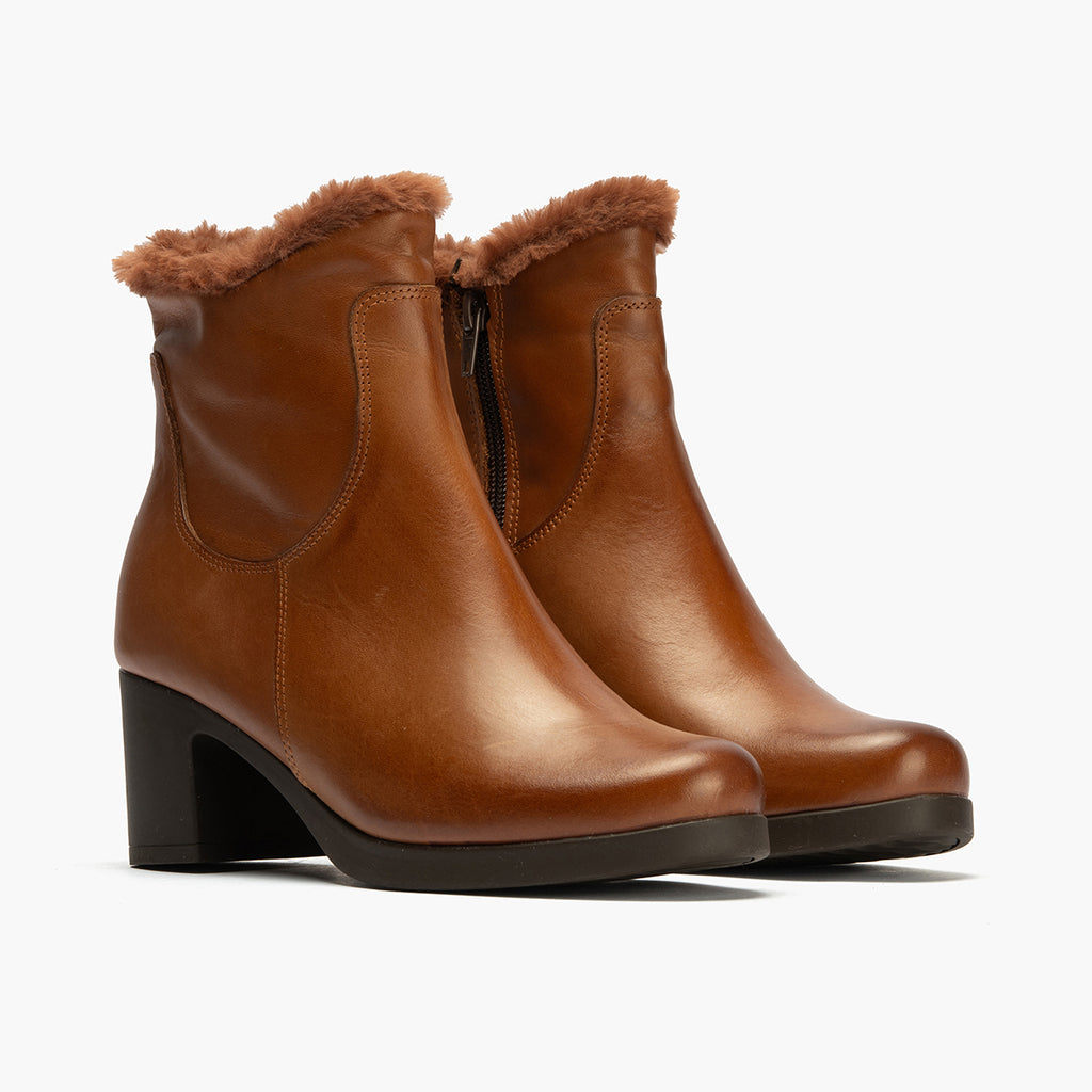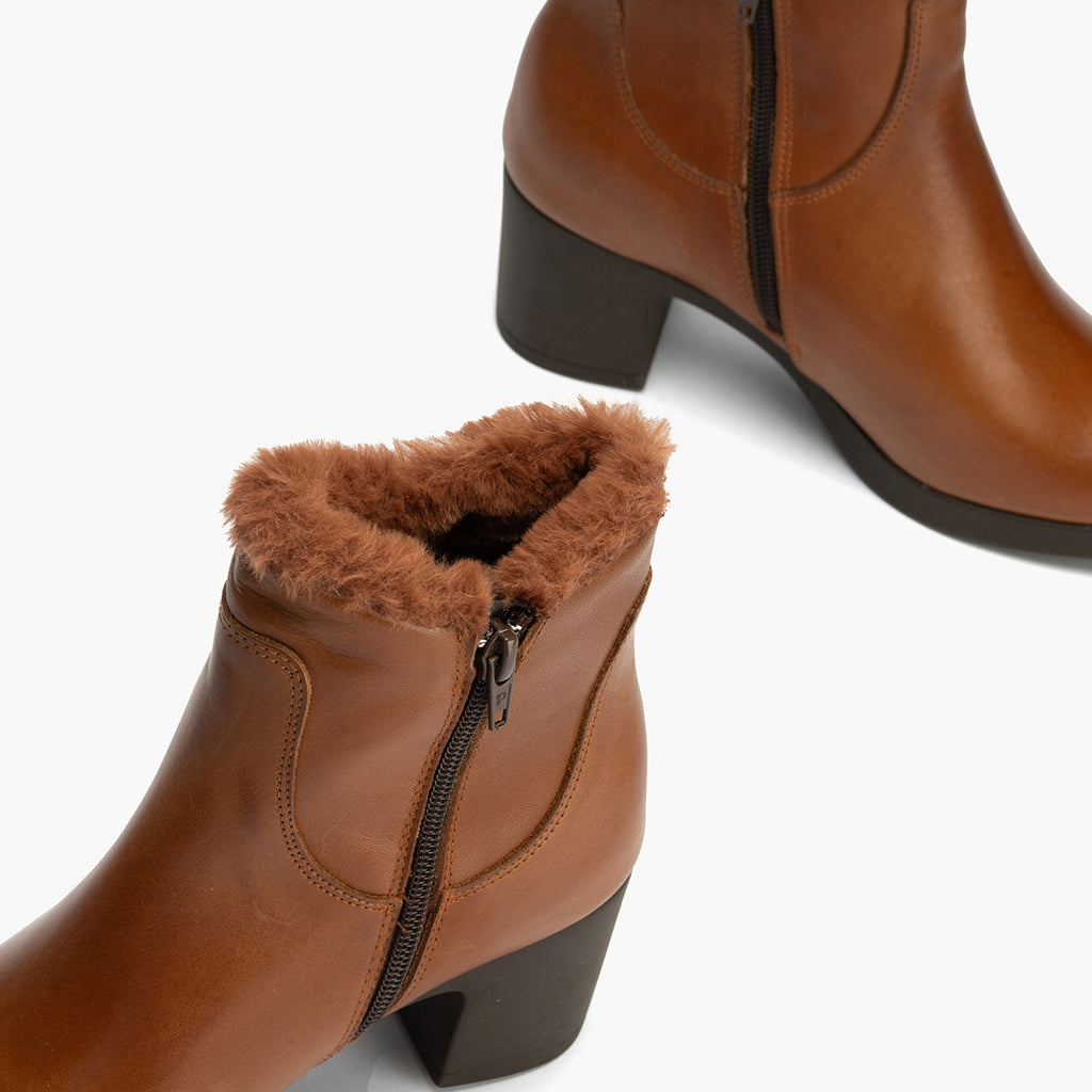 Botín con Pelo en napa de mujer color cuero: Estilo y funcionalidad unidos en un solo modelo.