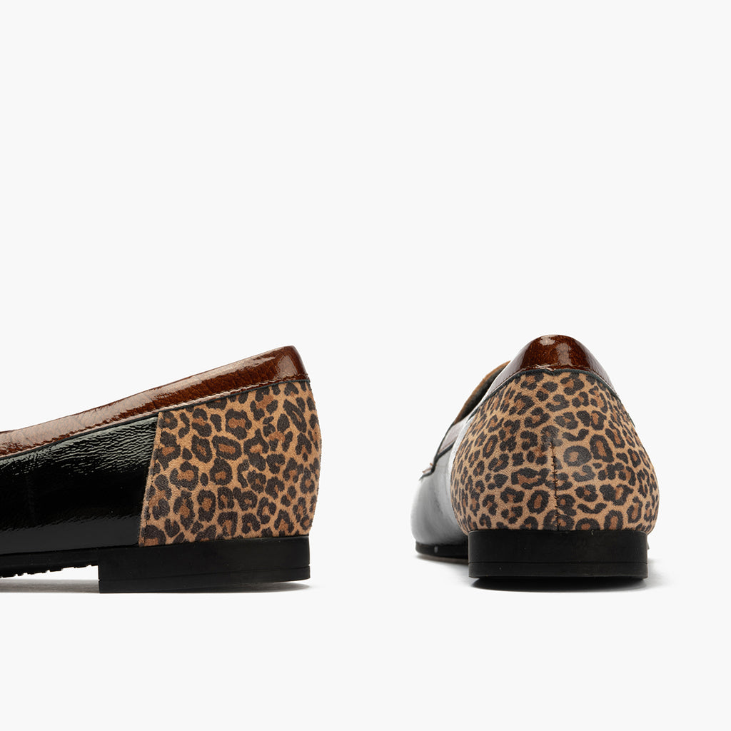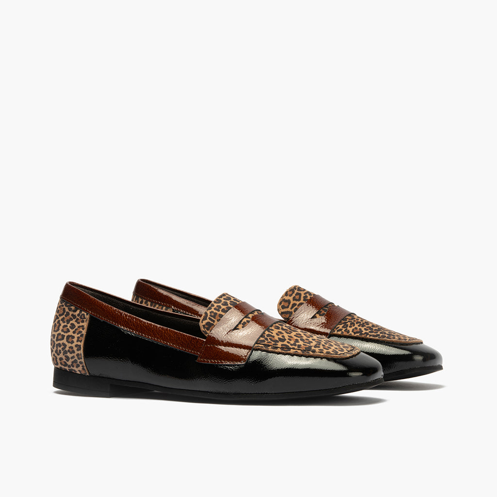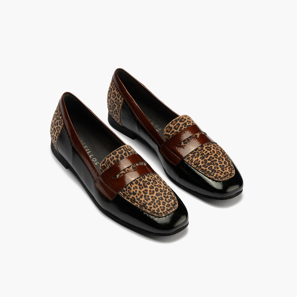 Mocasín Combinado en charol con leopardo de mujer color negro: Suaves, flexibles y pensados para el uso diario.