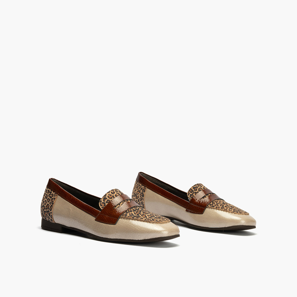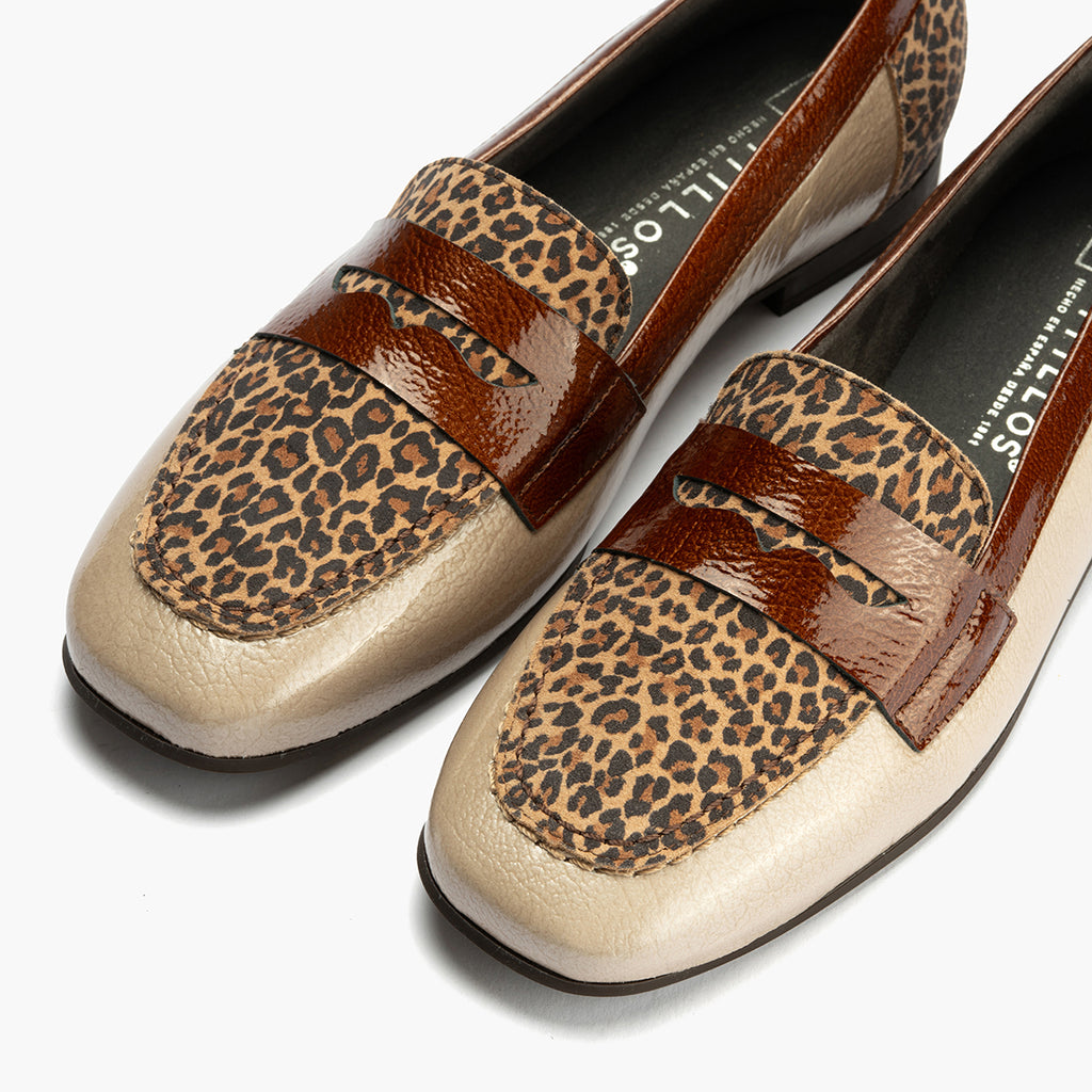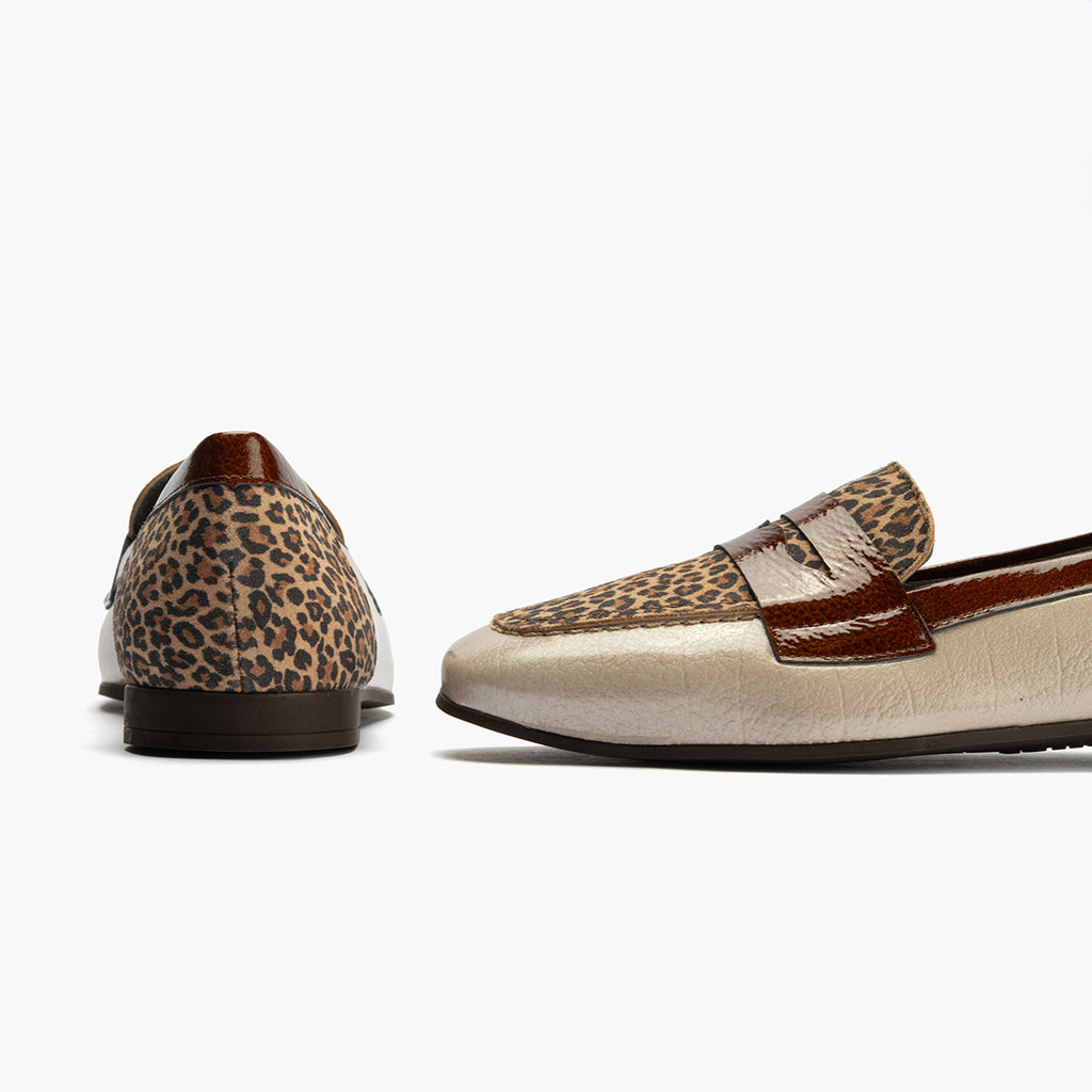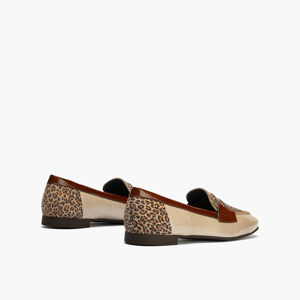 Mocasín Combinado en charol con leopardo de mujer color piedra