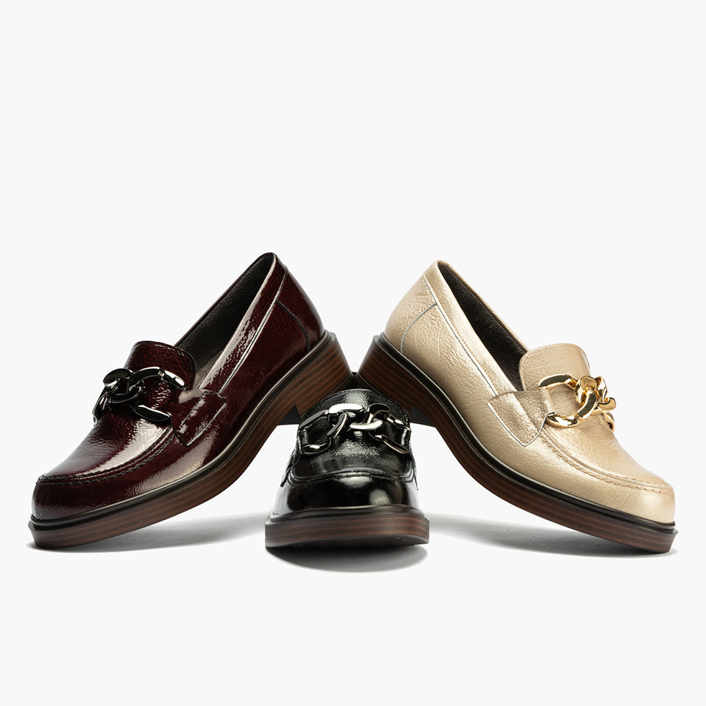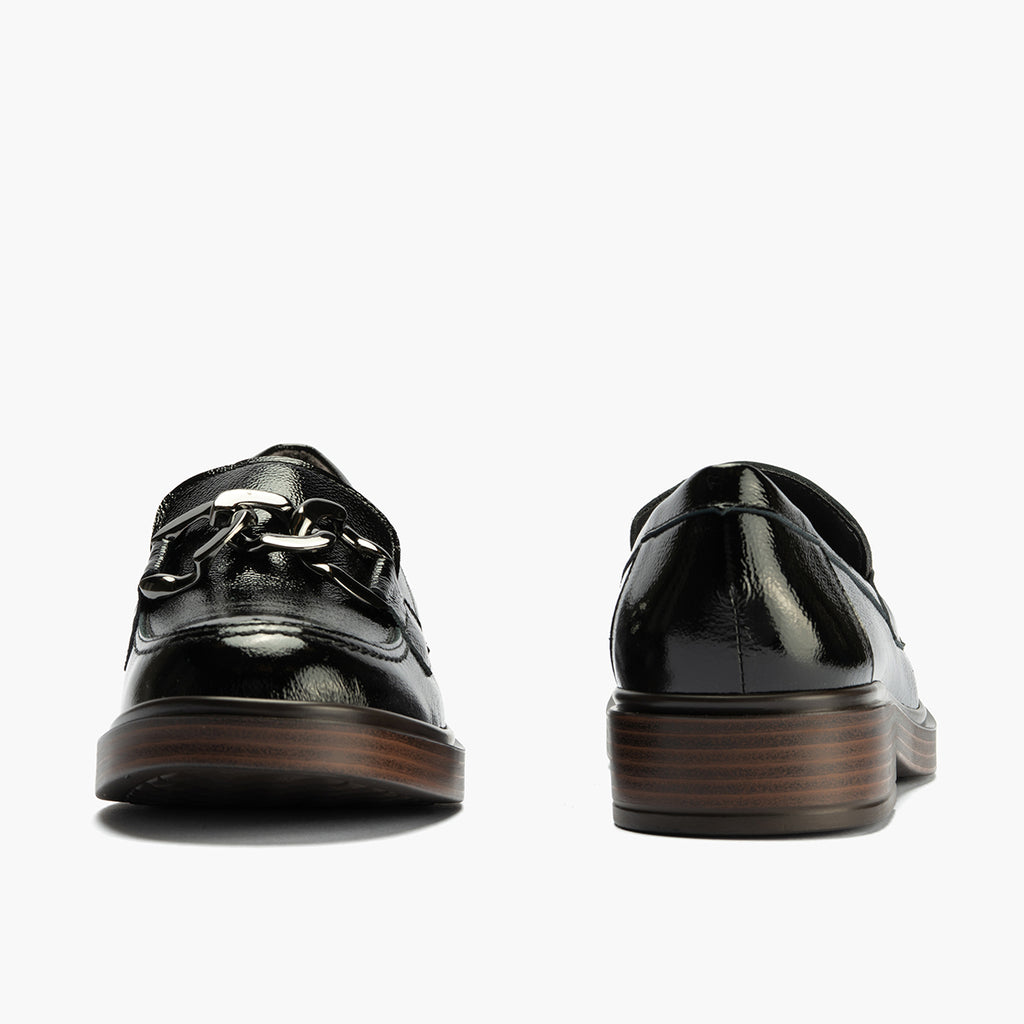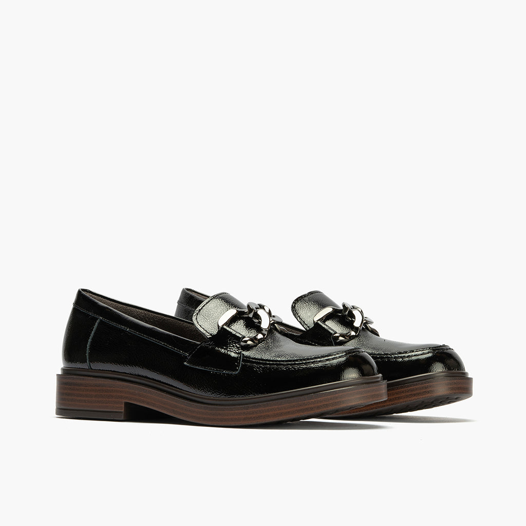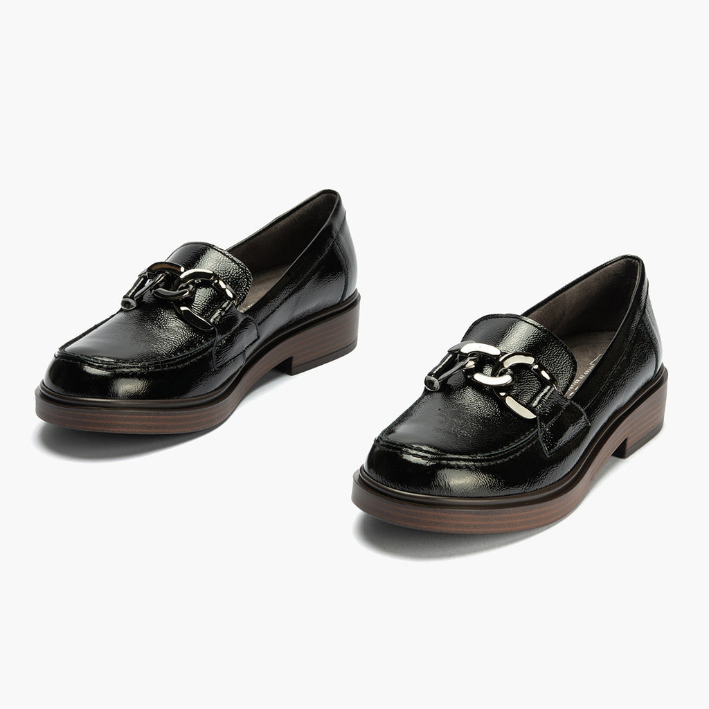 Mocasín en Charol con adorno de mujer color negro: Siente la diferencia con cada movimiento.