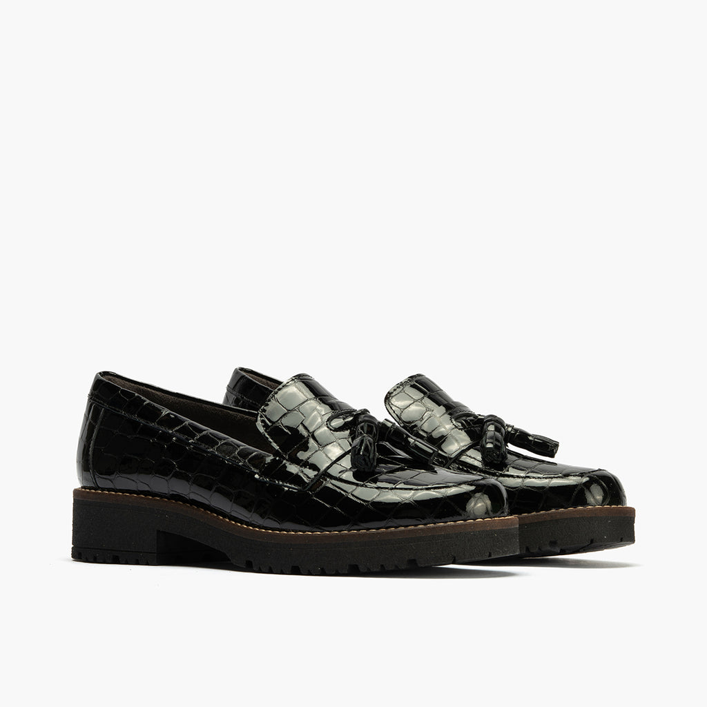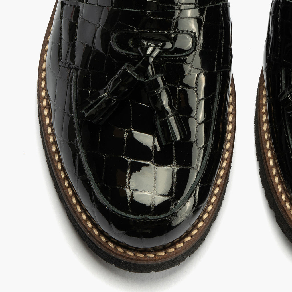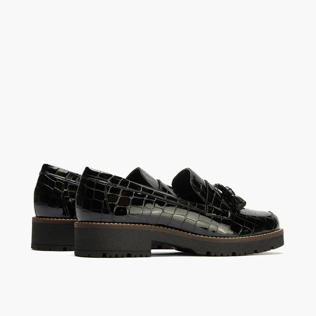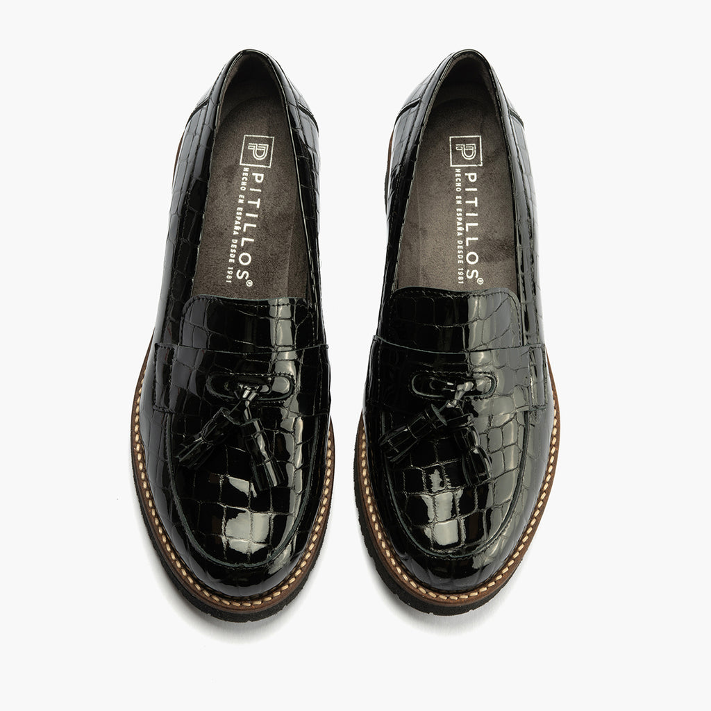 Mocasín en Coco con adorno de mujer color negro: Cada detalle cuenta. Cada paso importa.