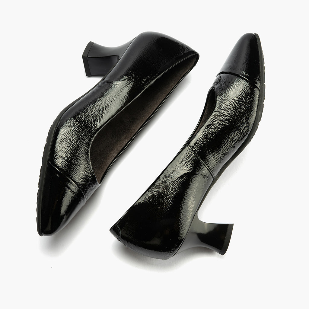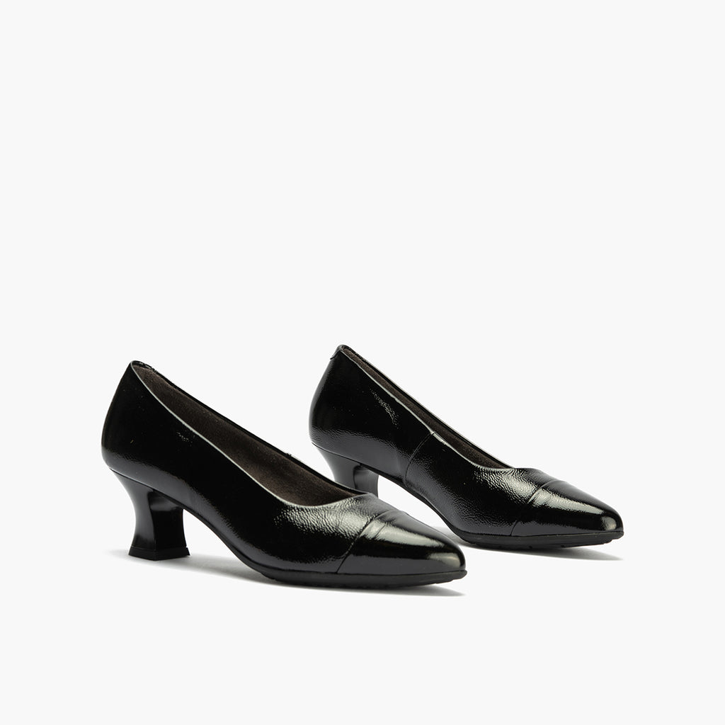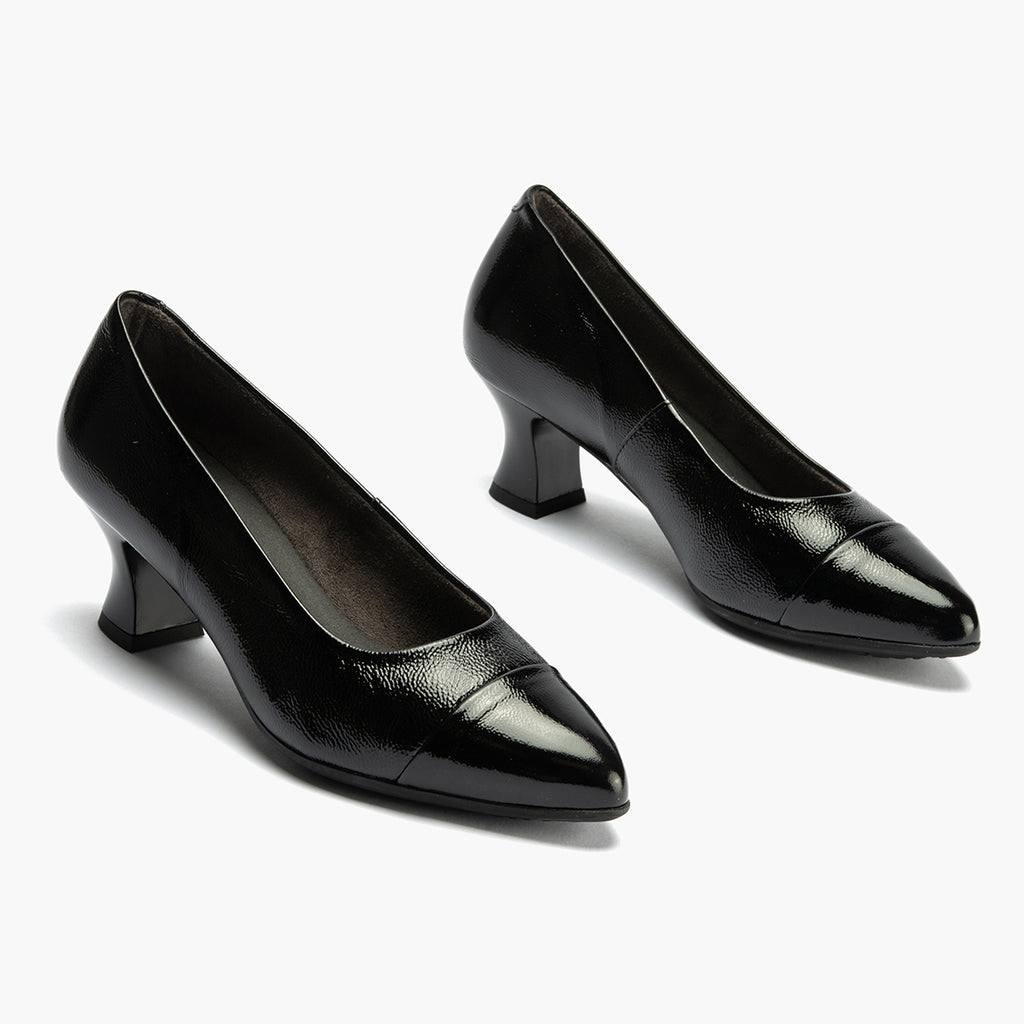 Salón con Punta fina en charol de mujer color negro/negro: Altura moderada, pisada segura y plantilla cómoda.