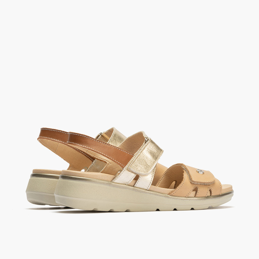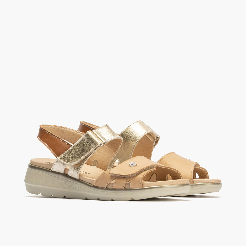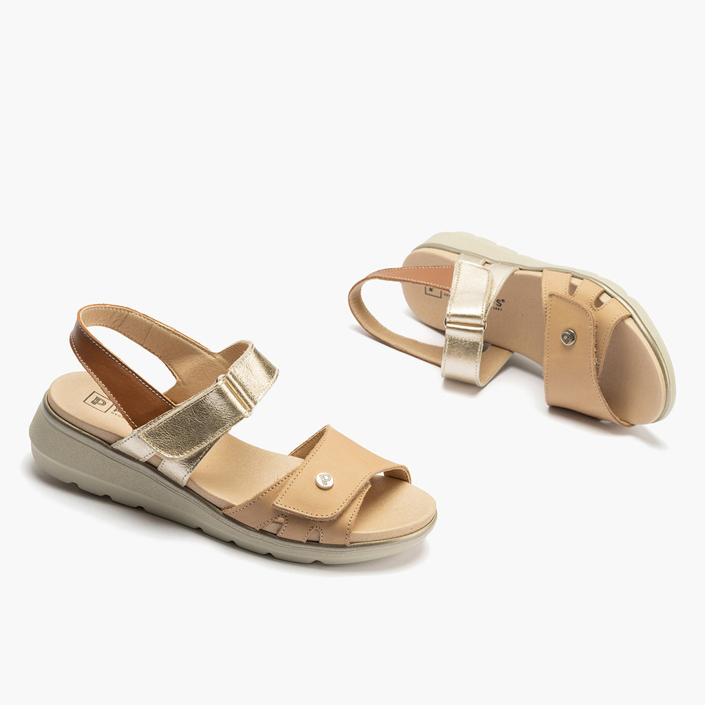 Confeccionada en Piel Napa con Piel Laminada para un toque elegante y diferente. Incluye plantilla técnica textil para extra-confort y sensación térmica óptima esta primavera/verano. compuesta por fibras transpirables para máximo confort. Altura de cuña: 3 cm.