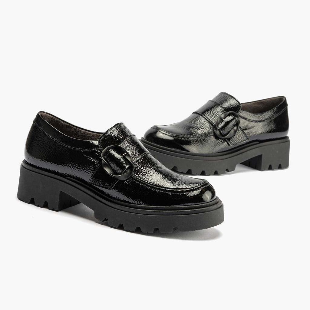 Chaussure en cuir breveté des femmes noires
