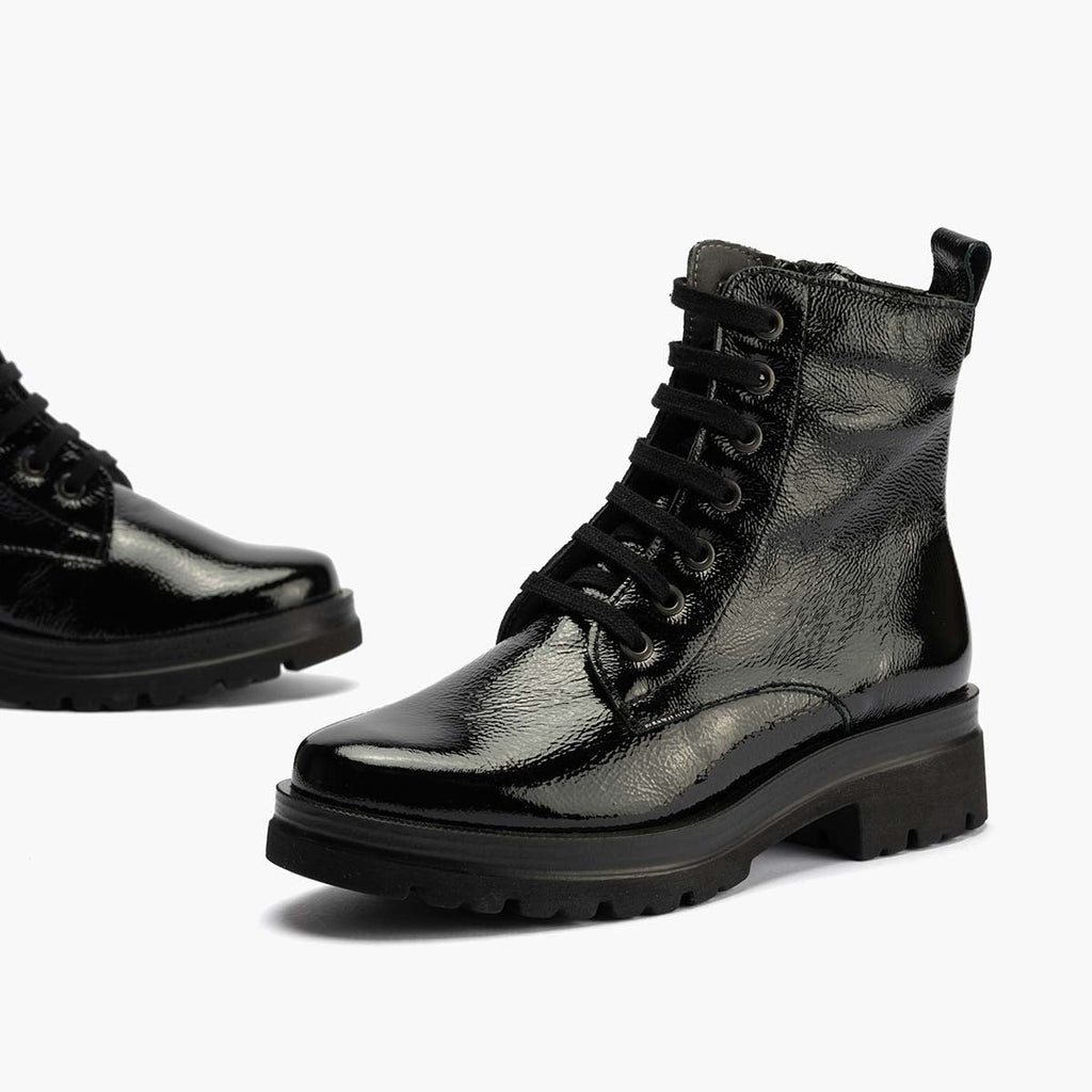 Boot militaire dans la couleur de la femme brevetée noire