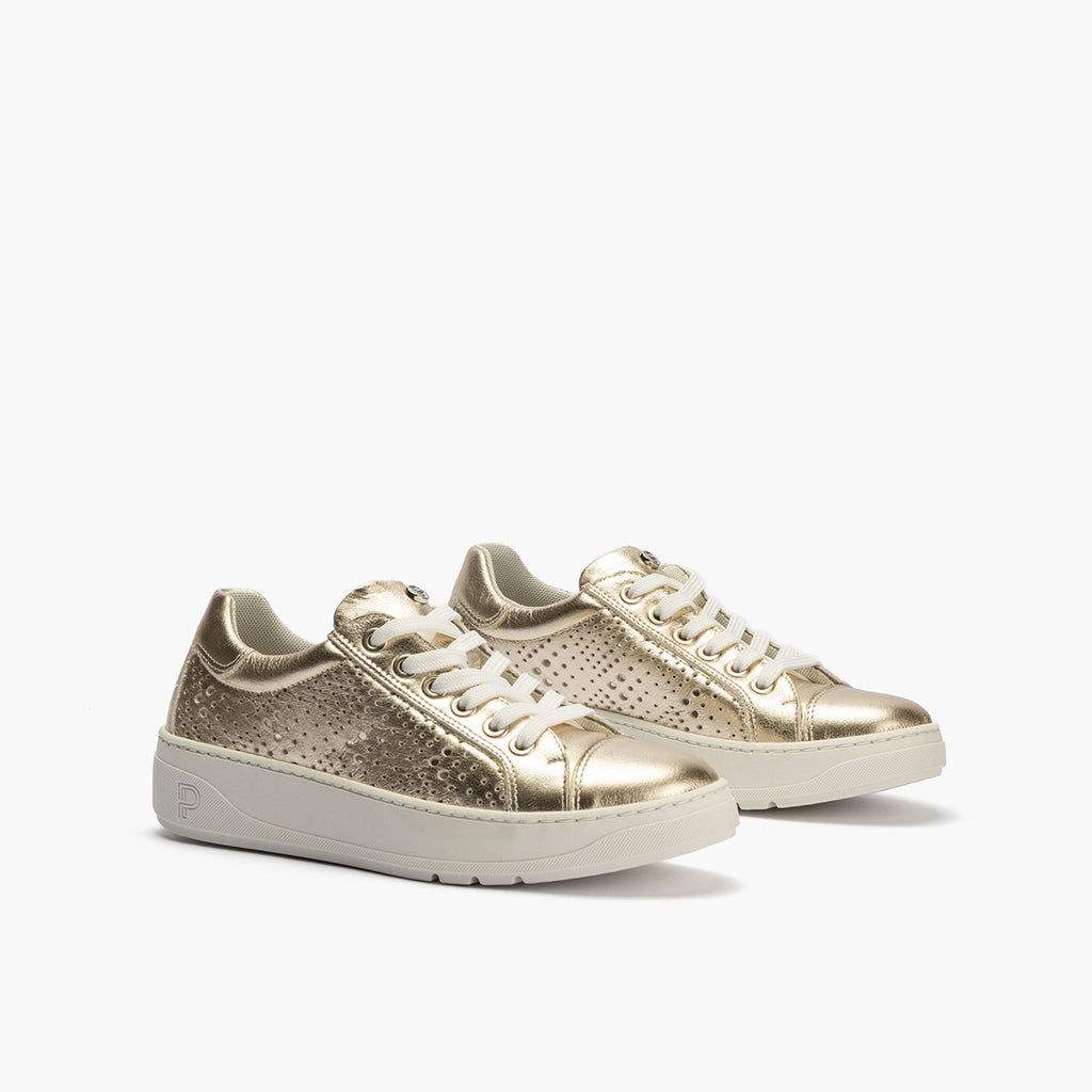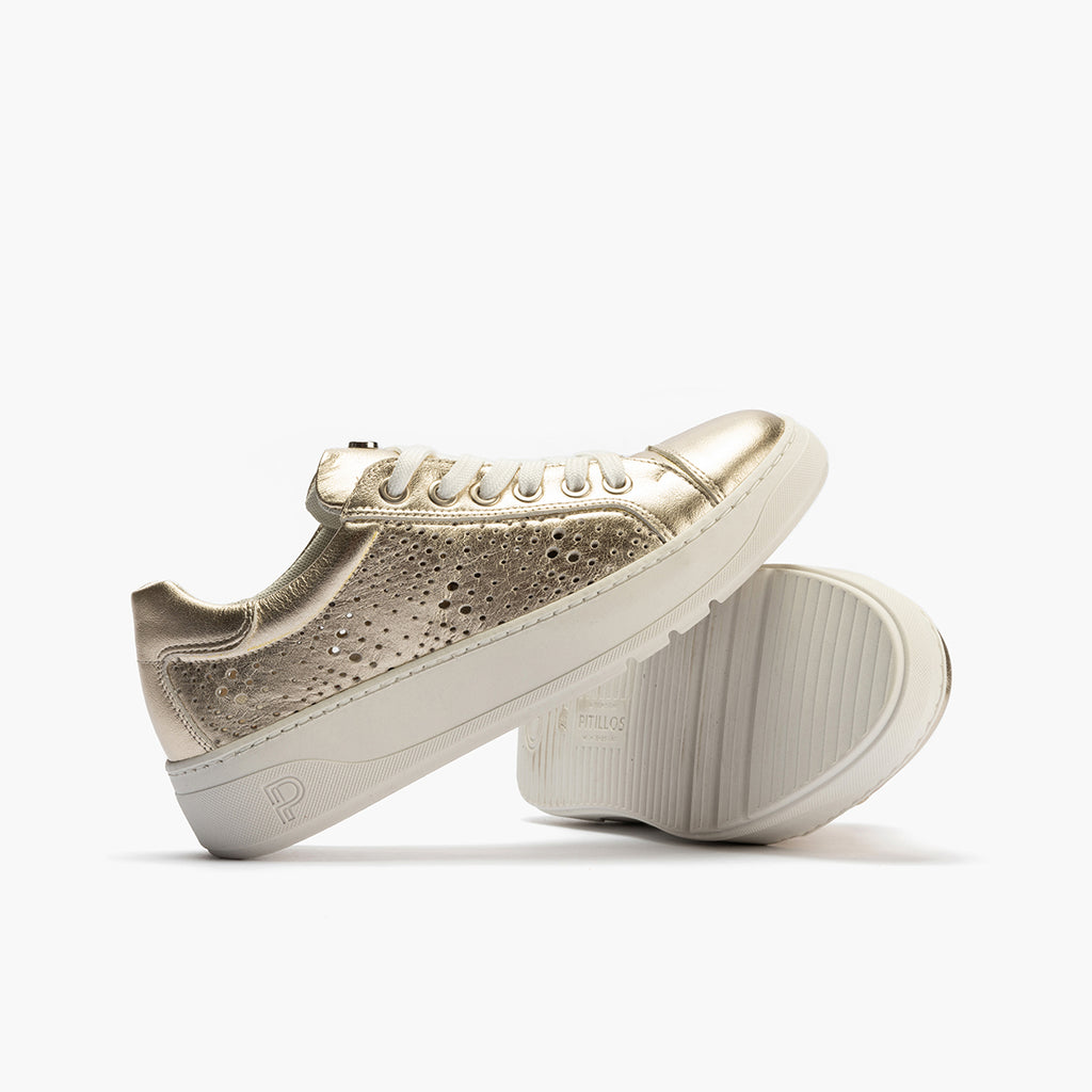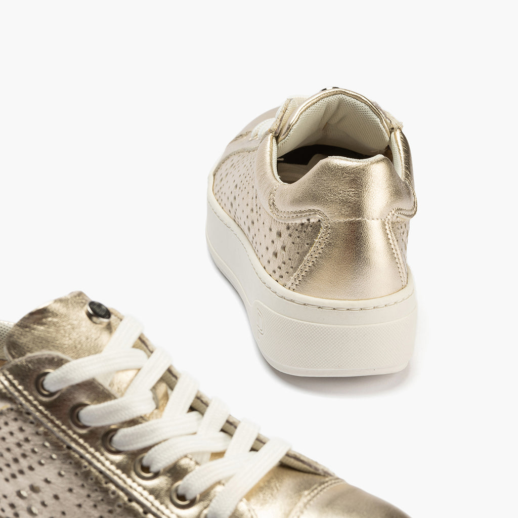 Basket con picados mujer en piel laminado ORO