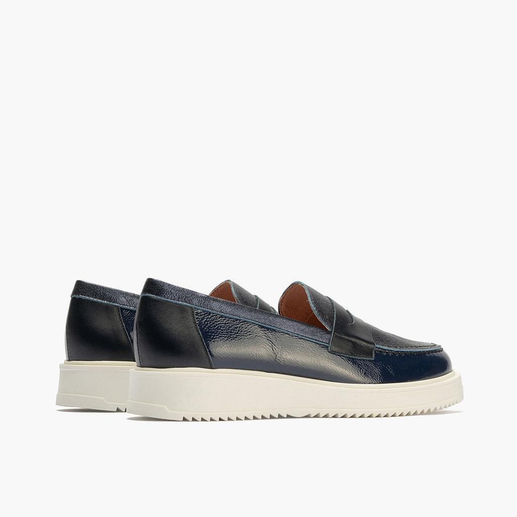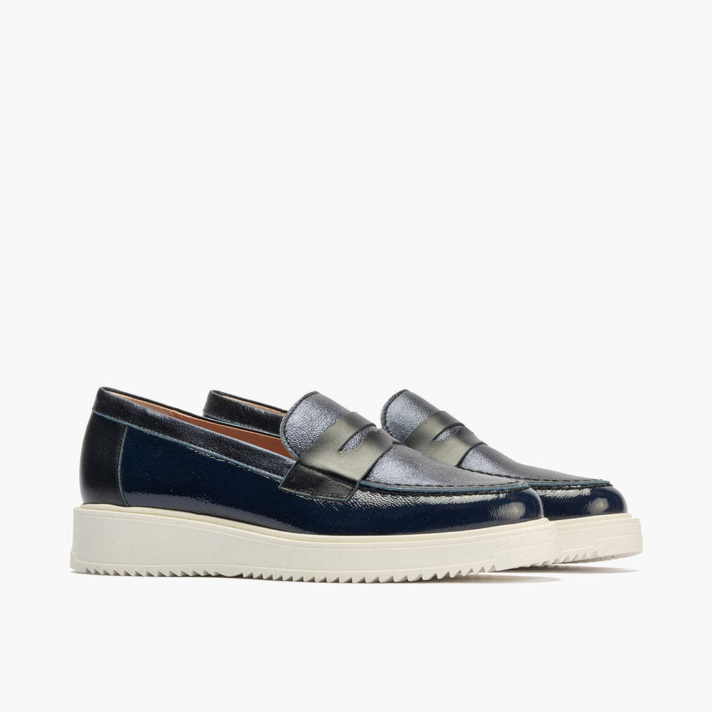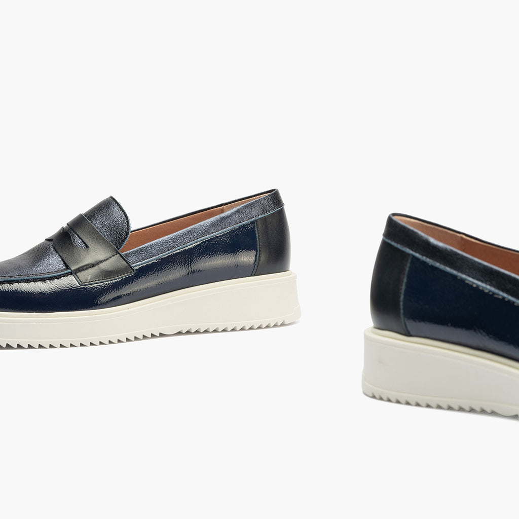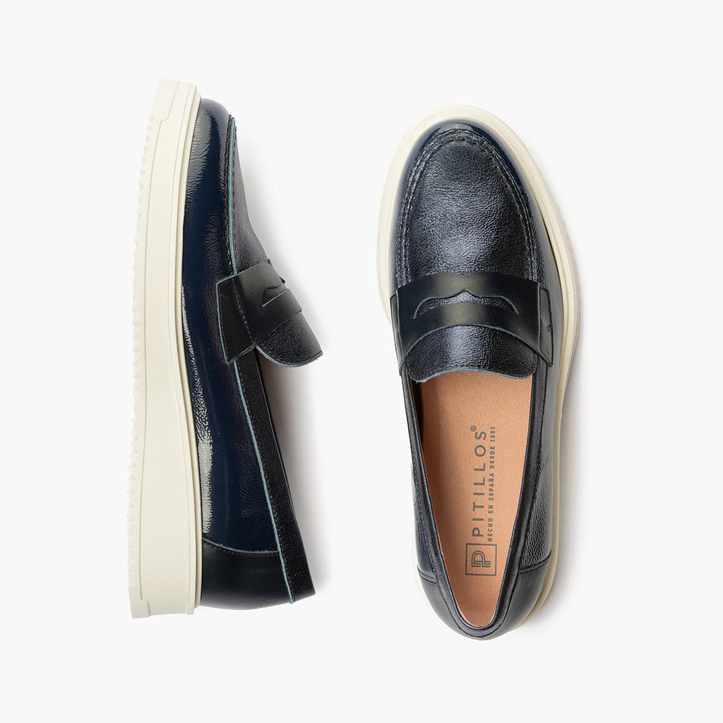 Mocasin con picados mujer en piel napa AZUL