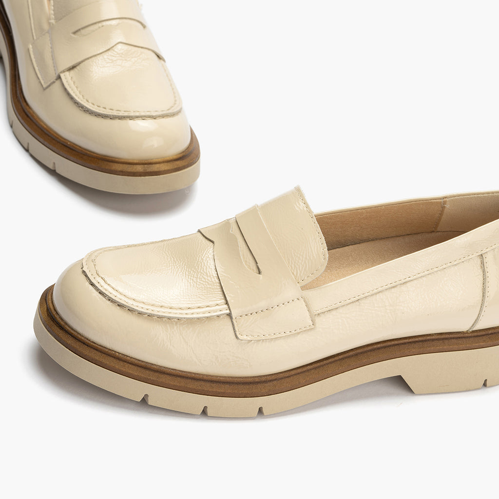 Confeccionada en Piel Charol para un toque elegante y diferente. Cuenta con plantilla extraíble para una mayor practicidad y confort. Su interior incorpora forro técnico textil que aporta extra-confort y sensación térmica óptima, perfecto para primavera verano. La suela de tr garantiza ligereza y resistencia.