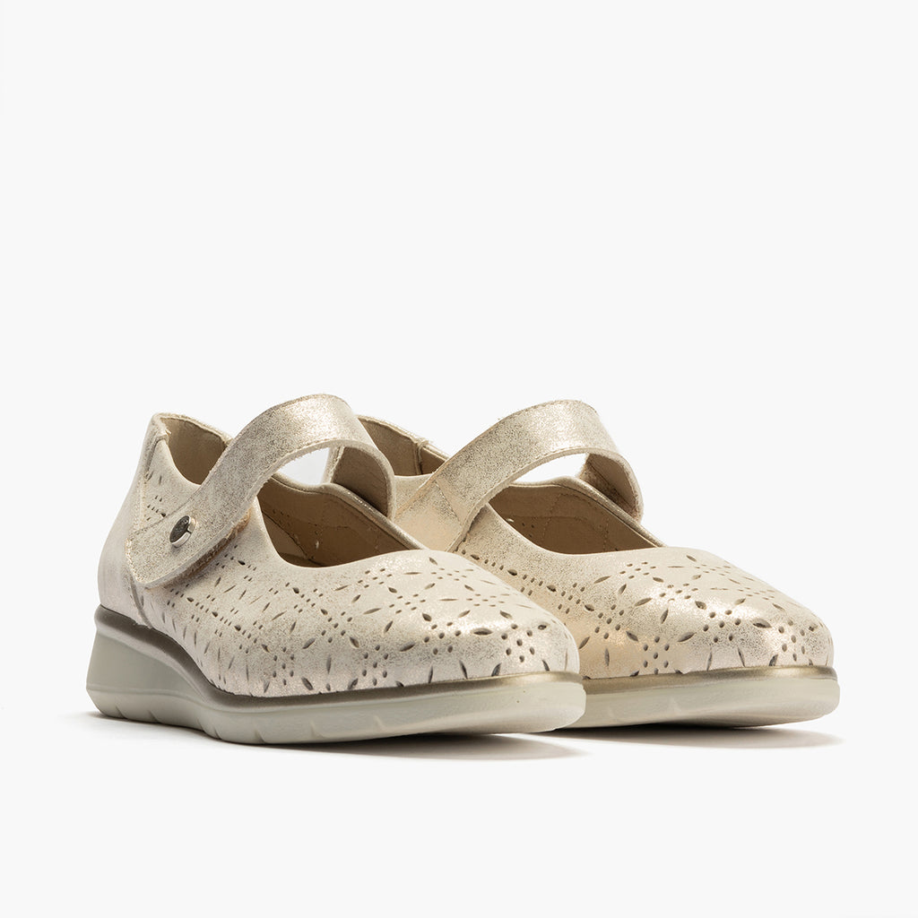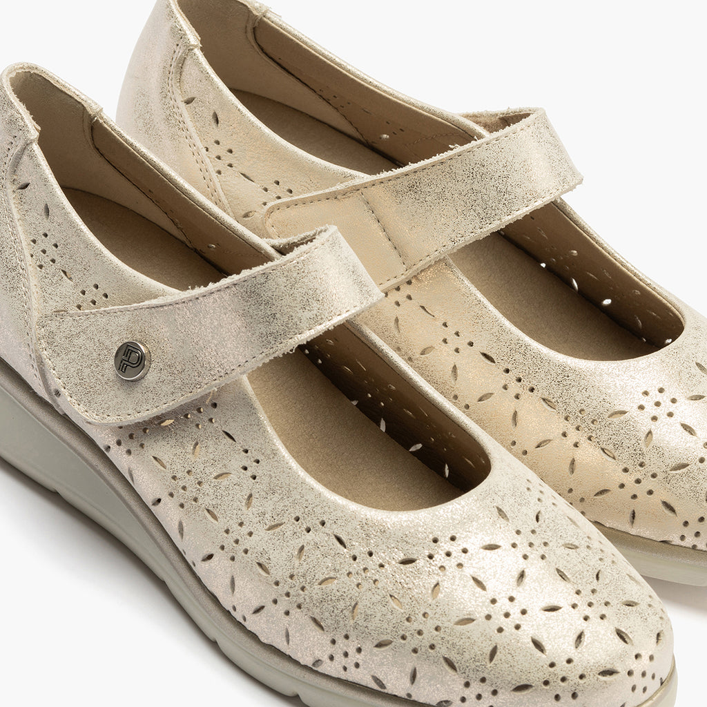 Mercedes con picados mujer con velcro en piel fantasía ORO