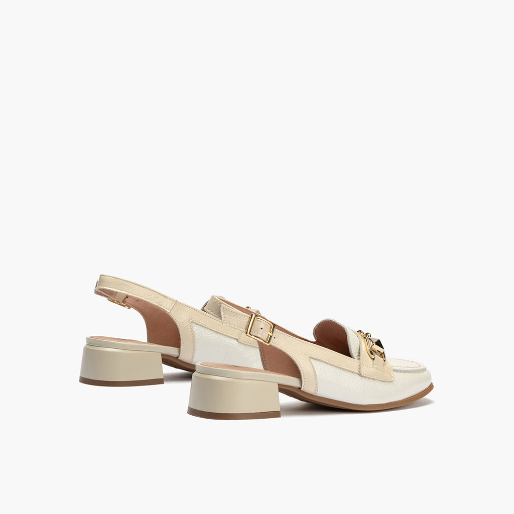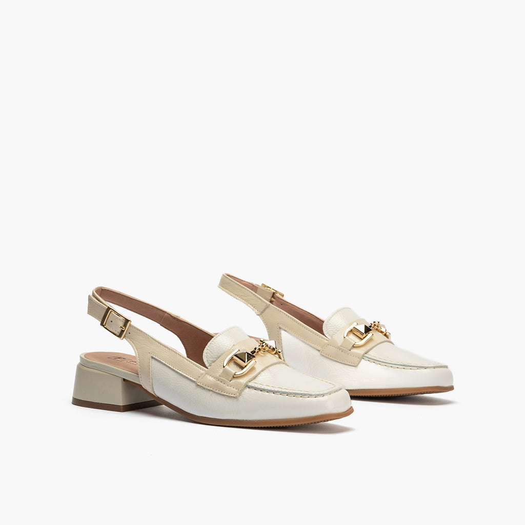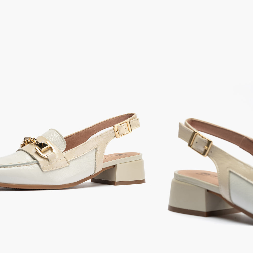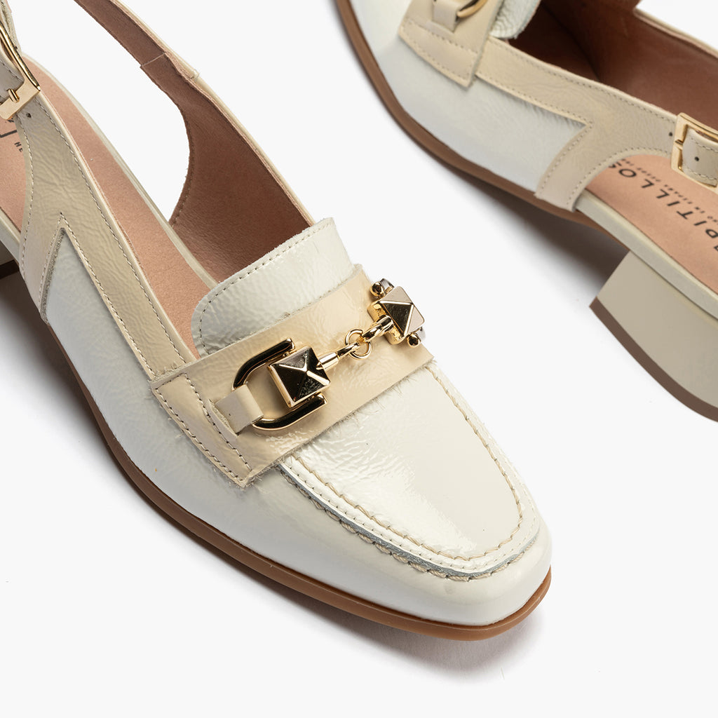 Mocasin punta cuadrada talon abierto mujer con hebilla en piel charol ROSA