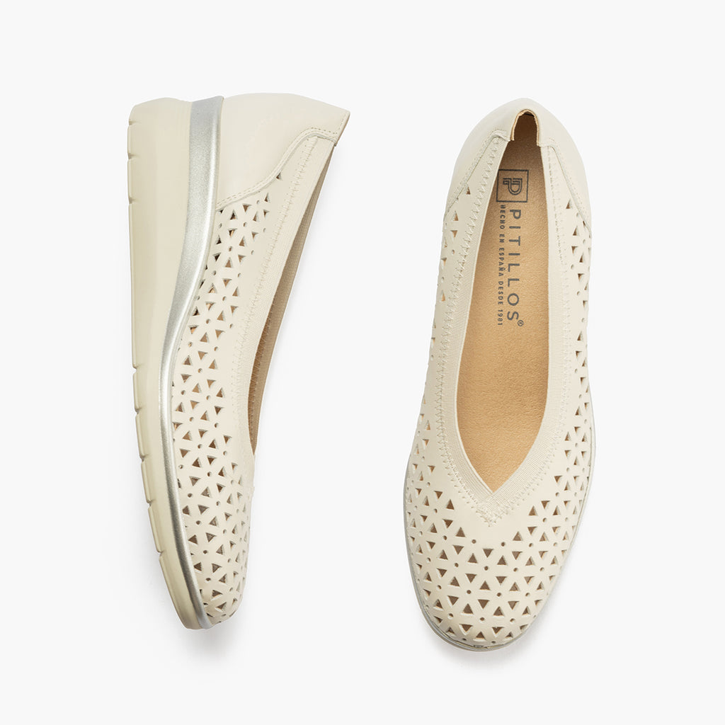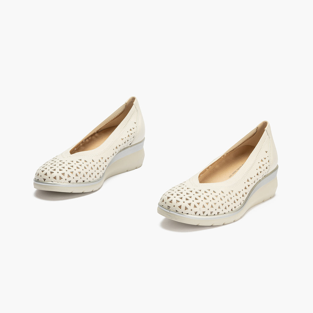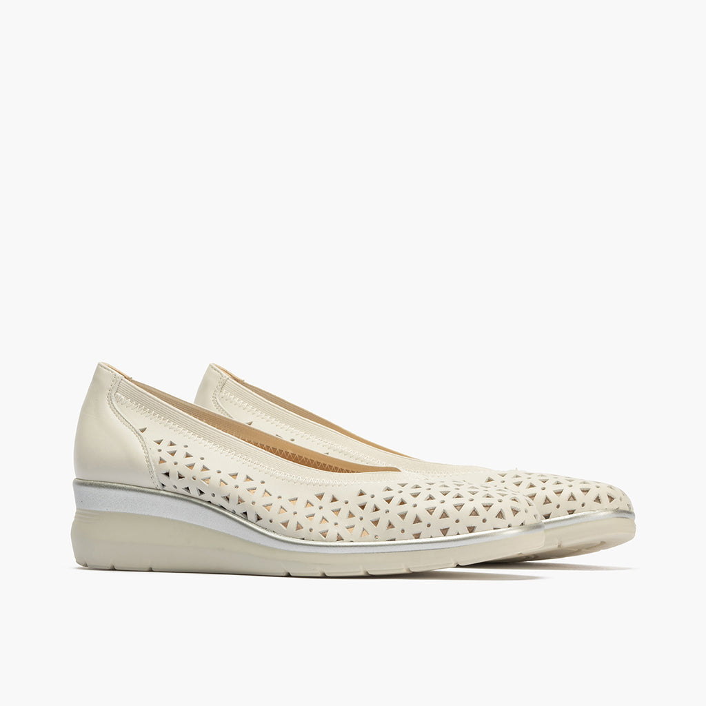Salon hueco pico mujer con elástico en piel napa BLANCO