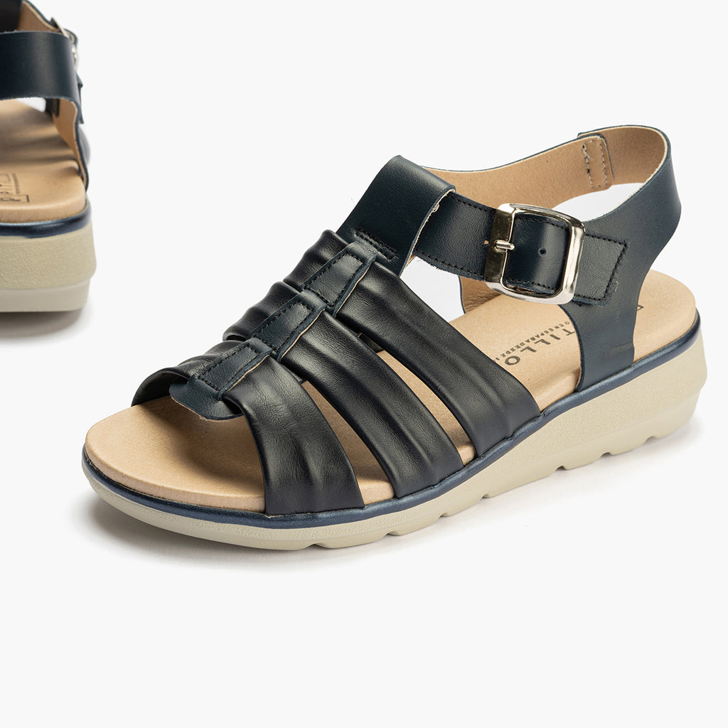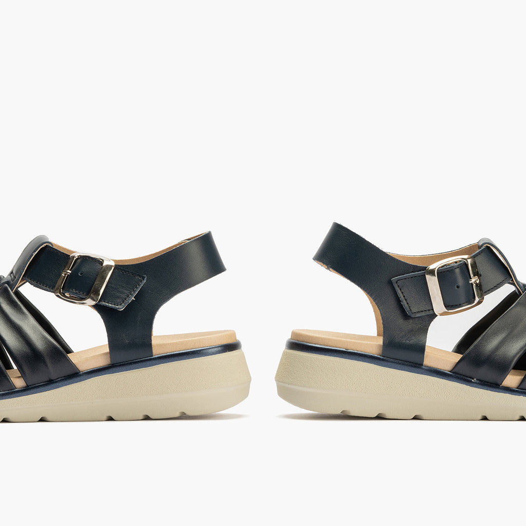 Sandalia frailera 3 tubulares mujer con hebilla en piel napa MARINO