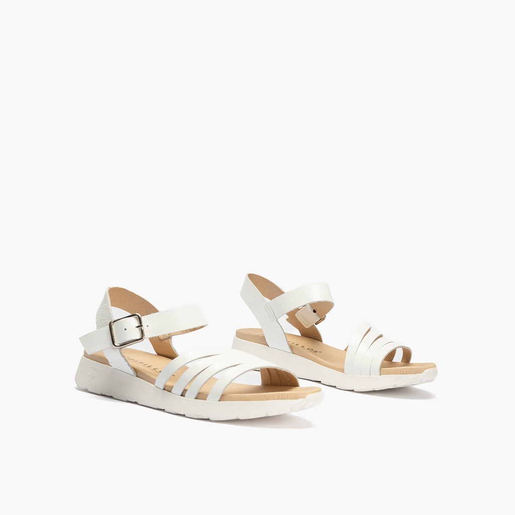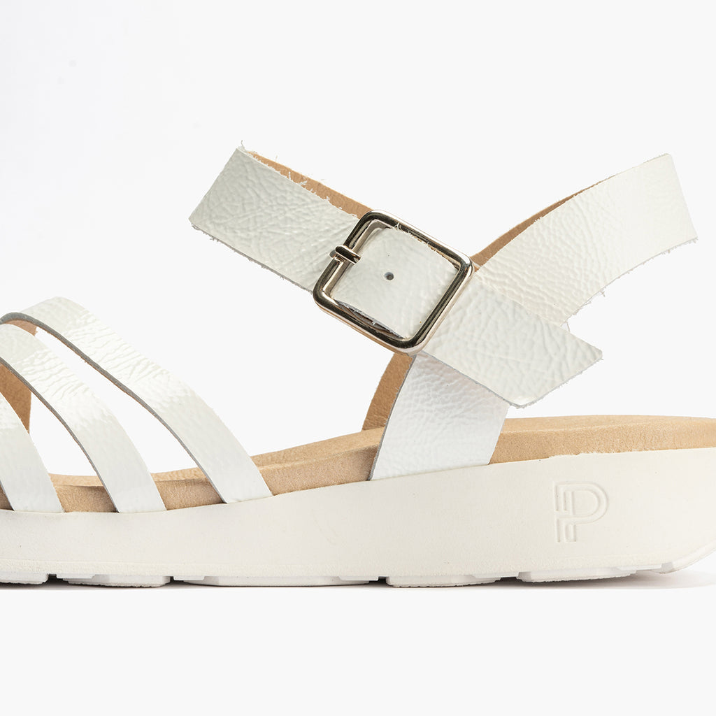 Sandalia pala 4 tiras mujer con hebilla en piel charol BLANCO