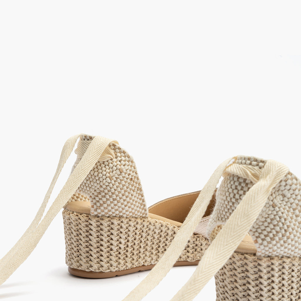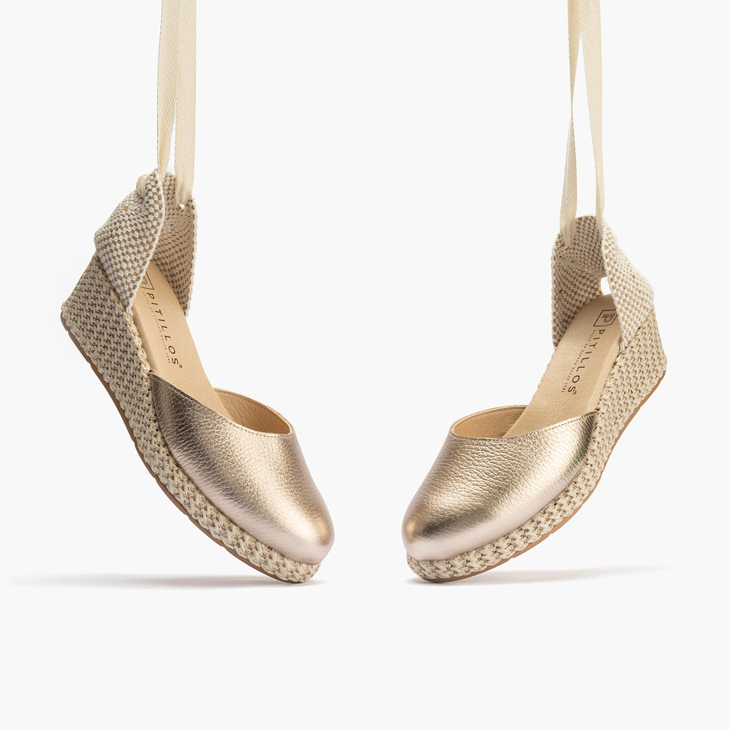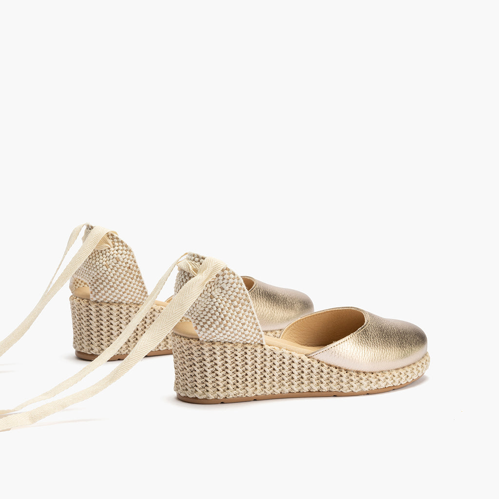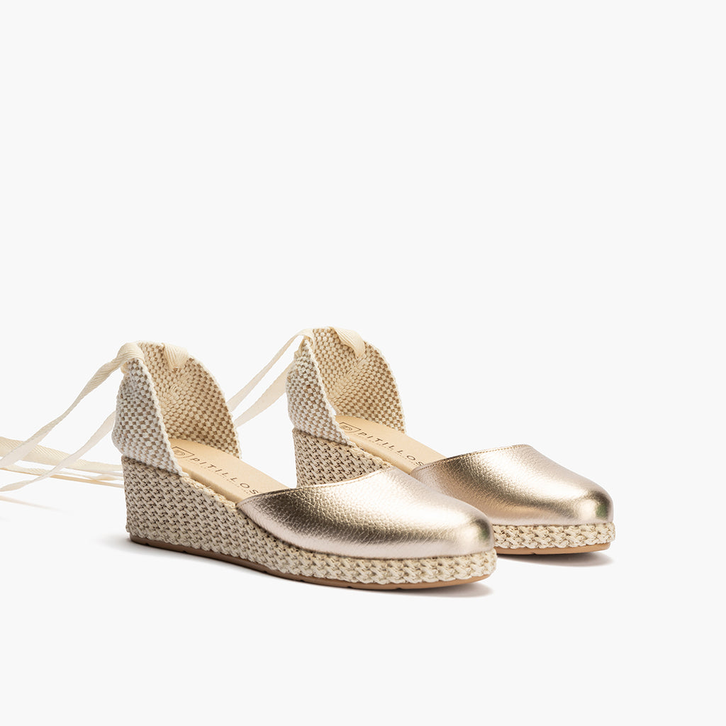 Valenciana con cuña pala mujer con cintas en rafia ORO