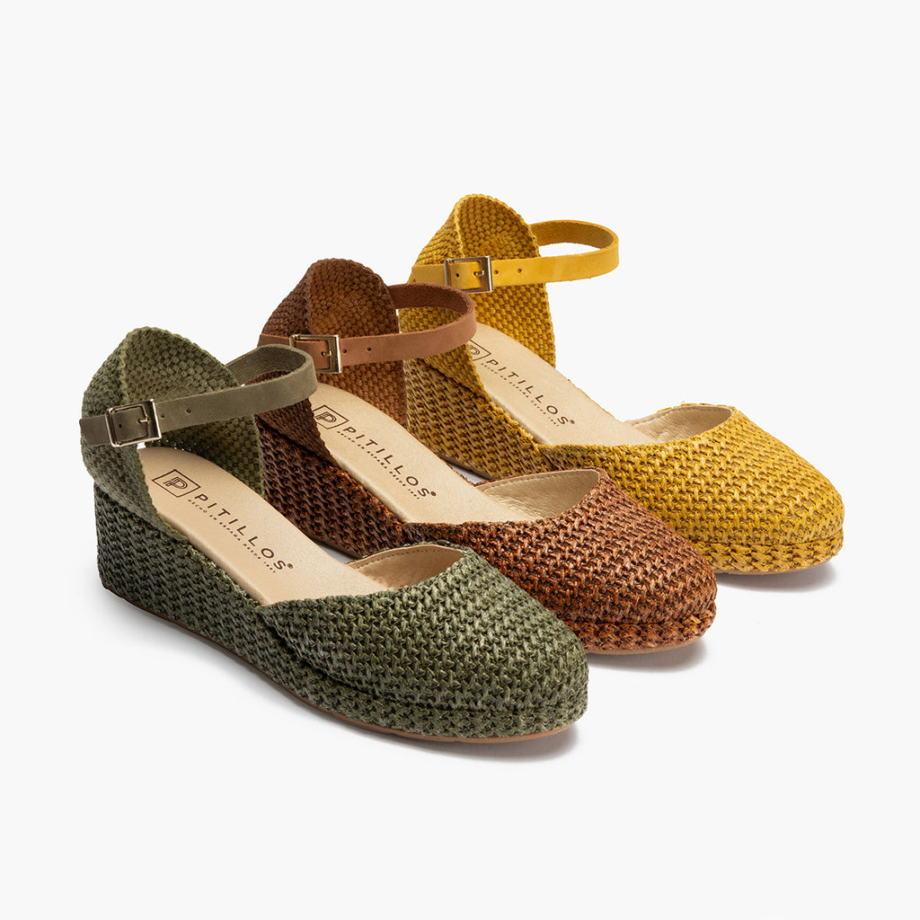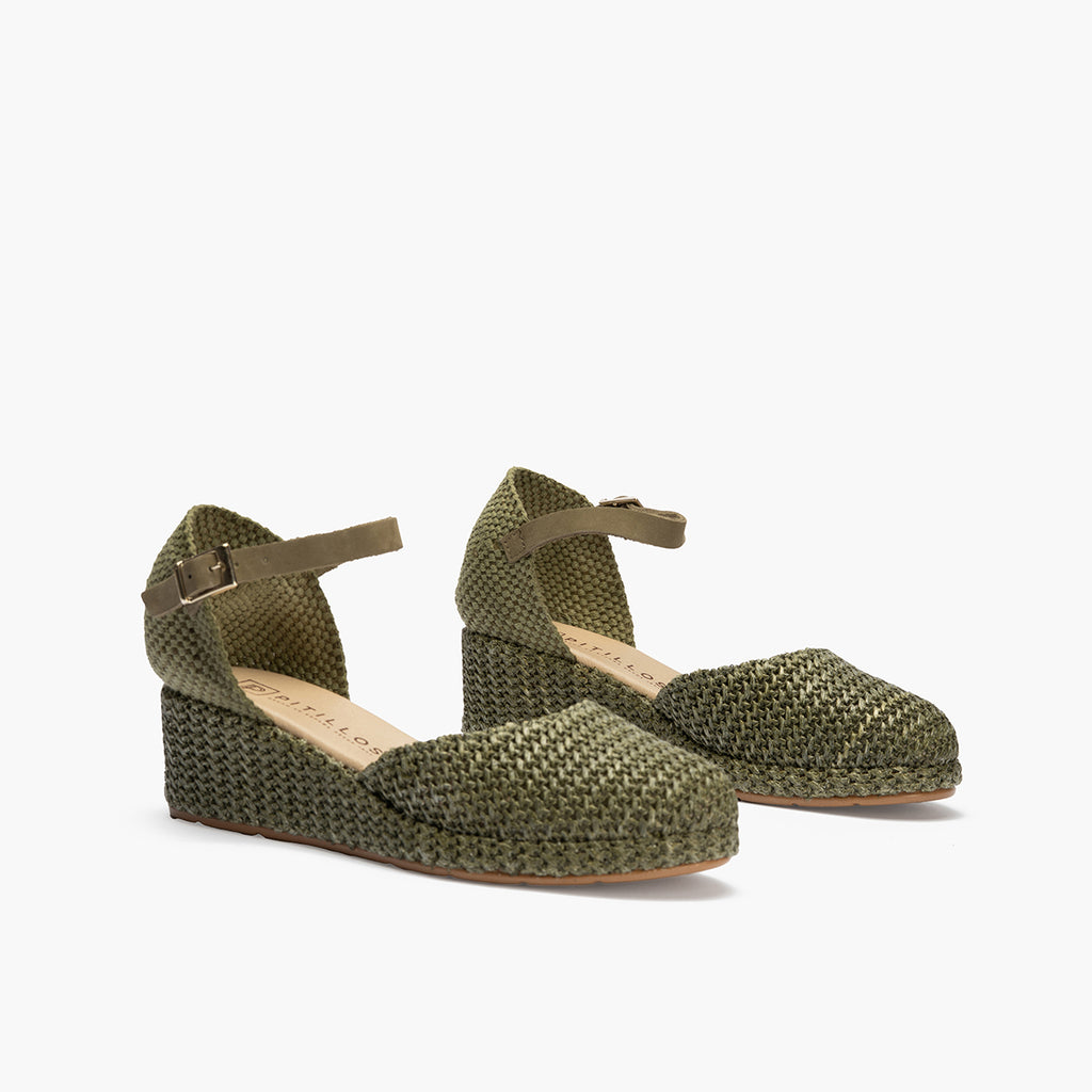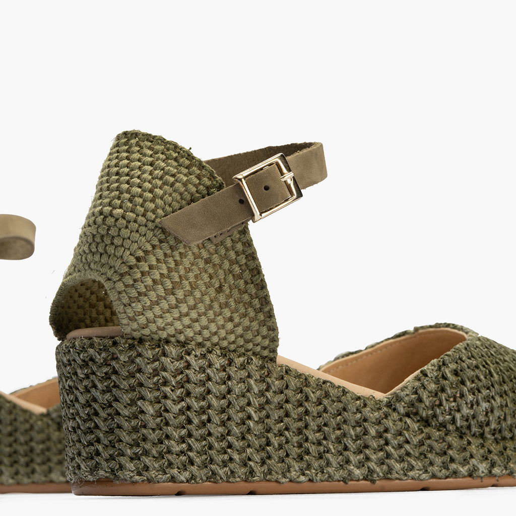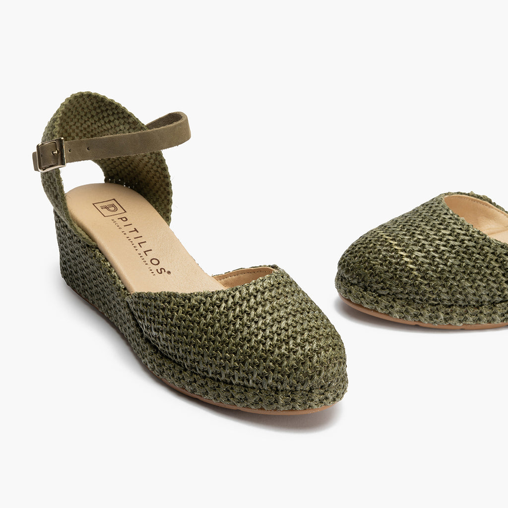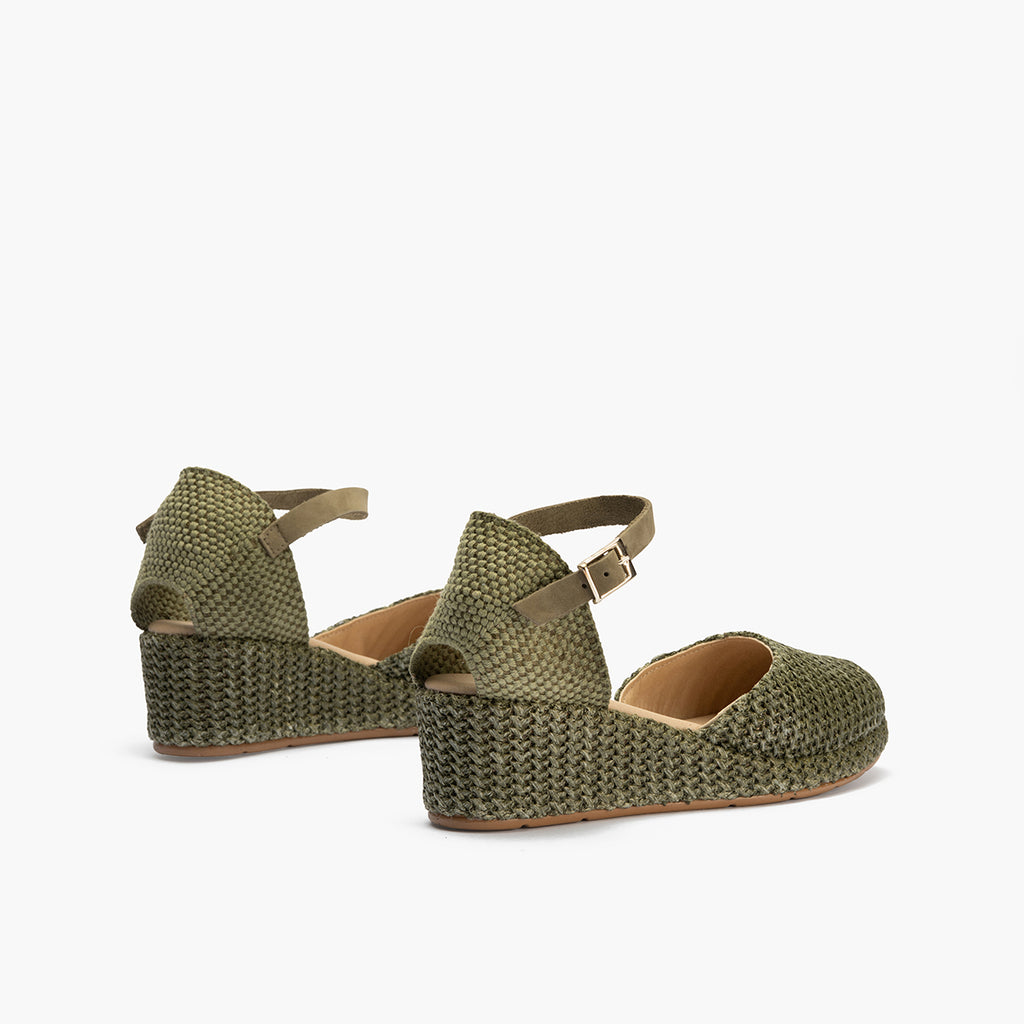 Valenciana cuña pala mujer con hebilla en rafia VERDE