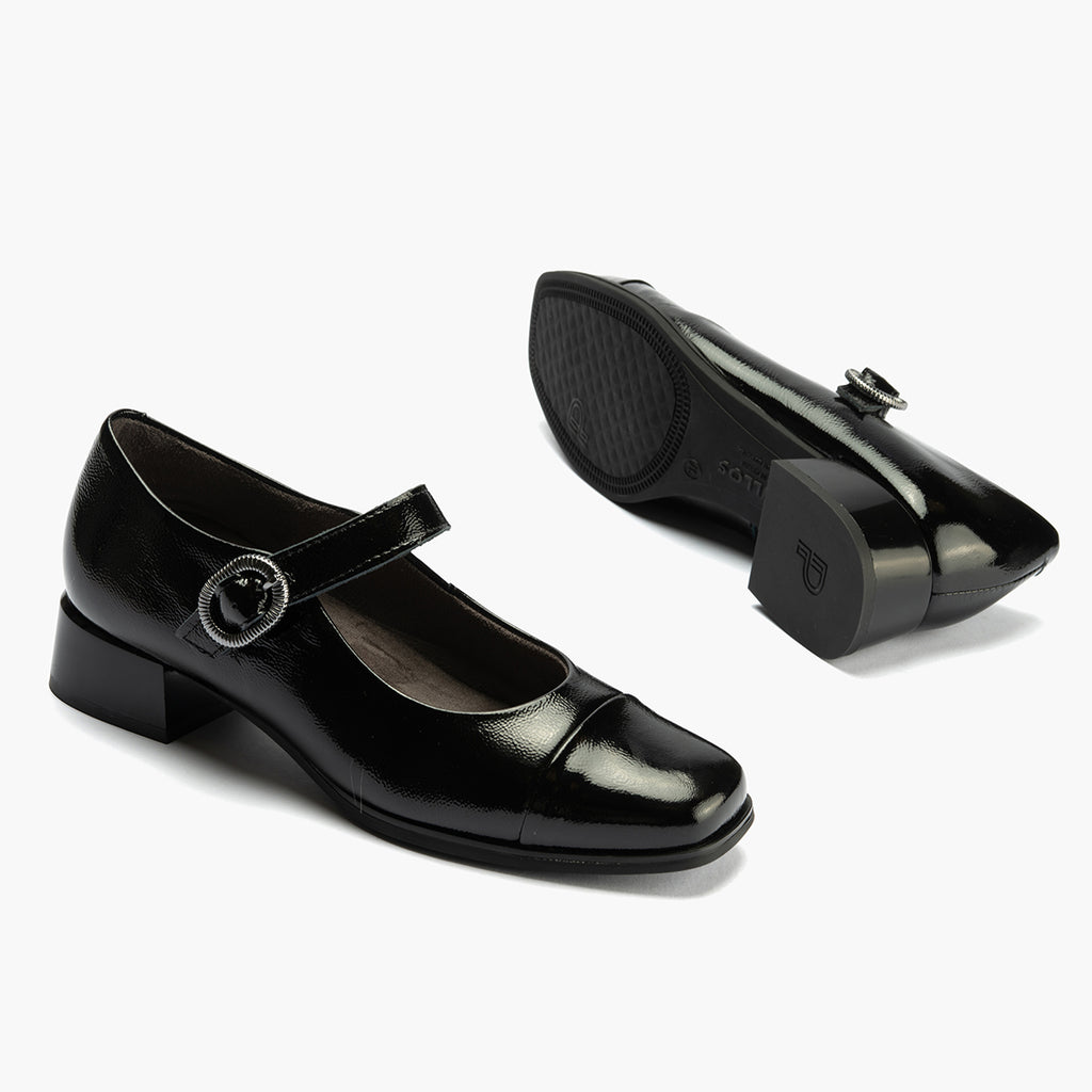 Mercedes con correas en charol de mujer negro: Siempre favorecedores, siempre acertados.
