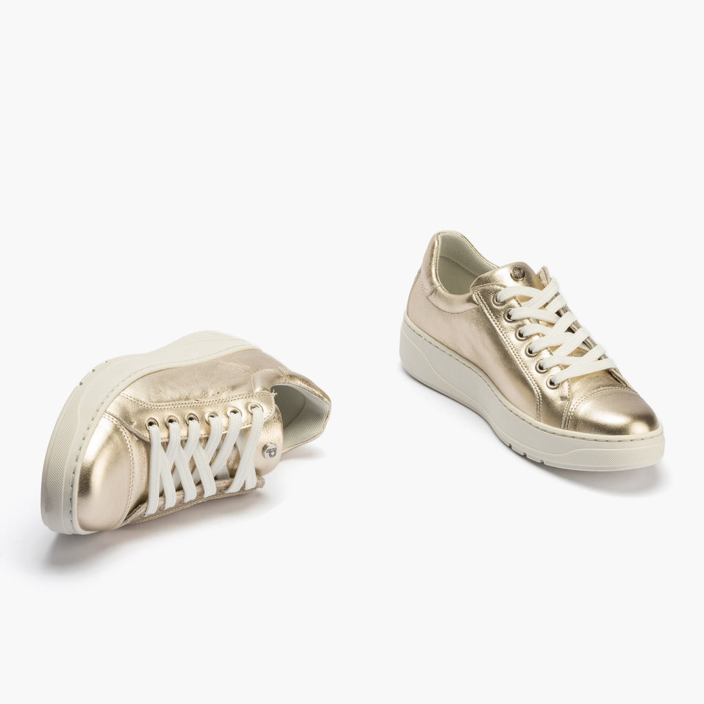 Basket con picados mujer en piel napa ORO