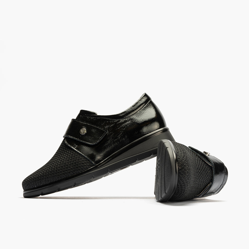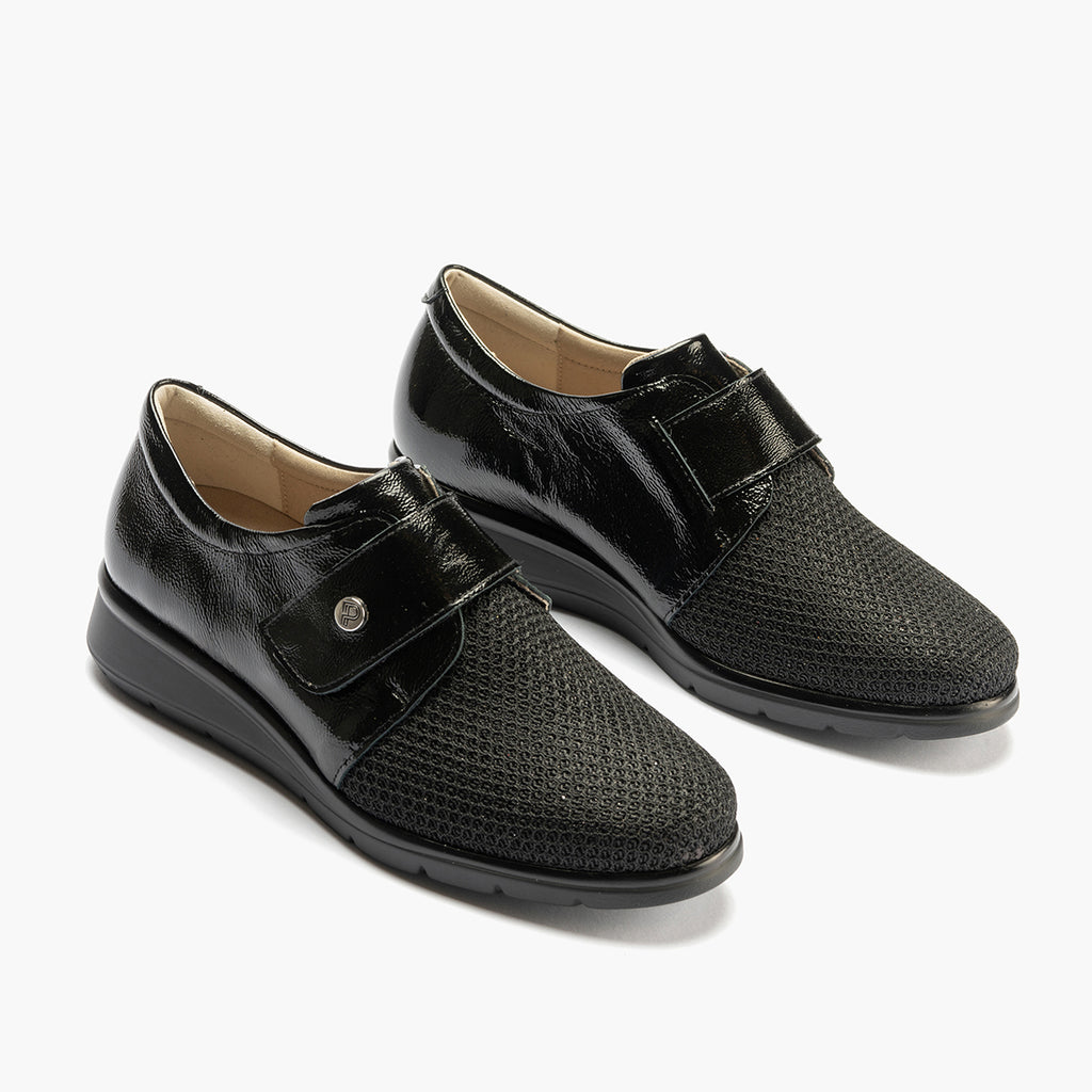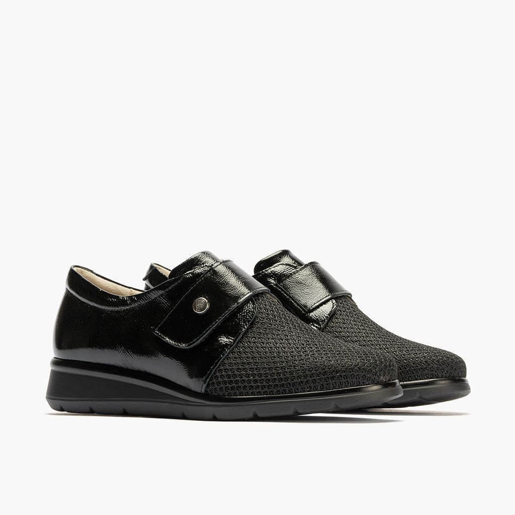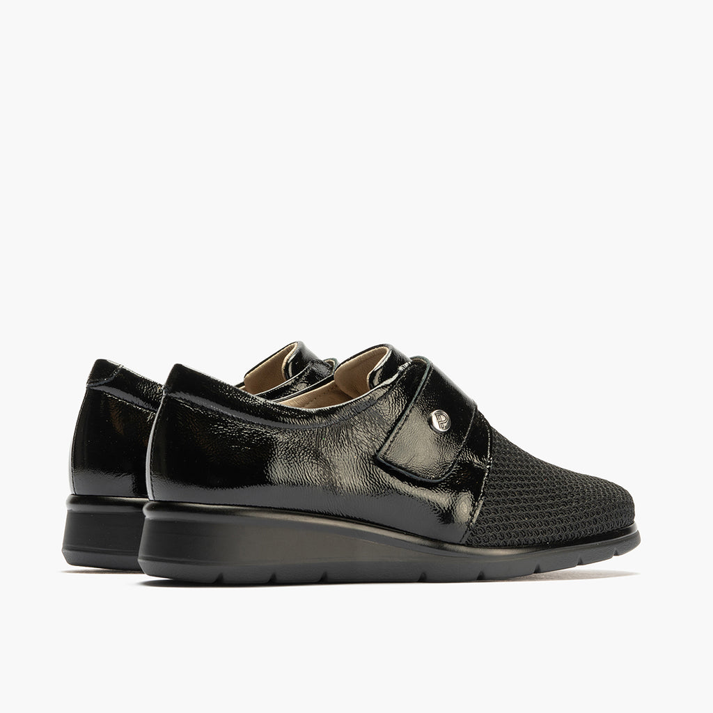 Blucher con rejilla mujer con velcro en piel charol NEGRO
