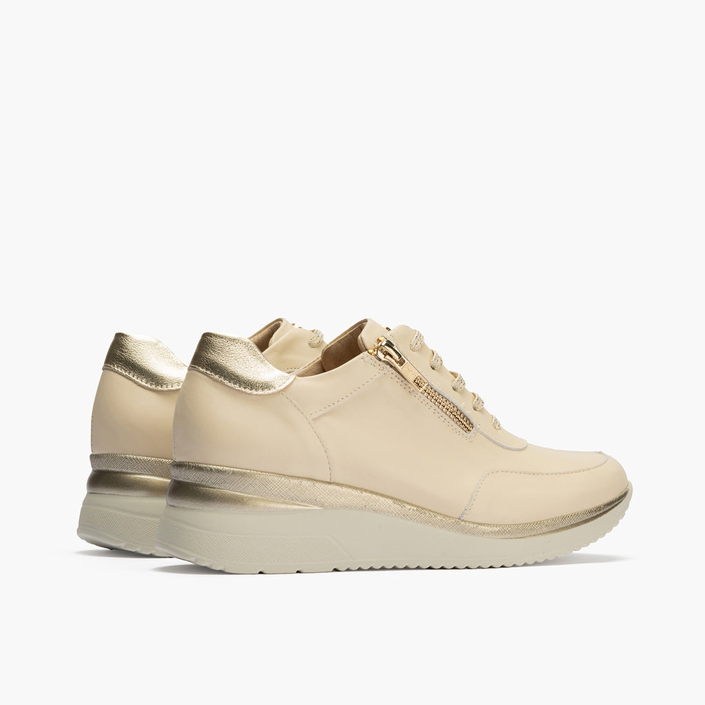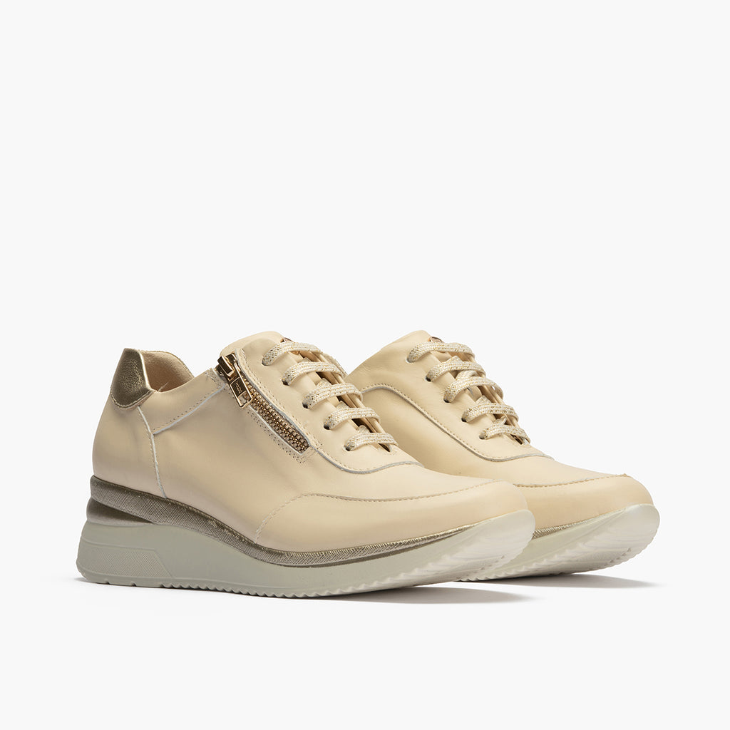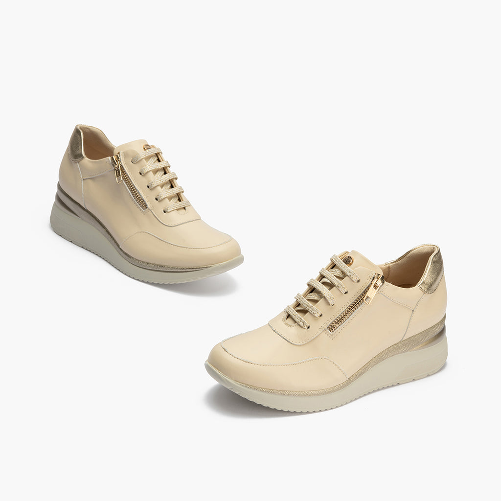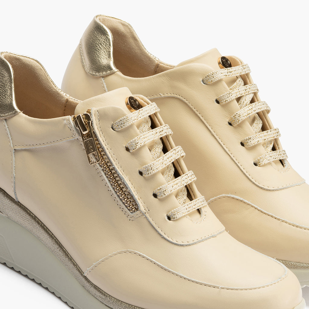 Deportivo cuña mujer con cremallera en piel combinada CREMA