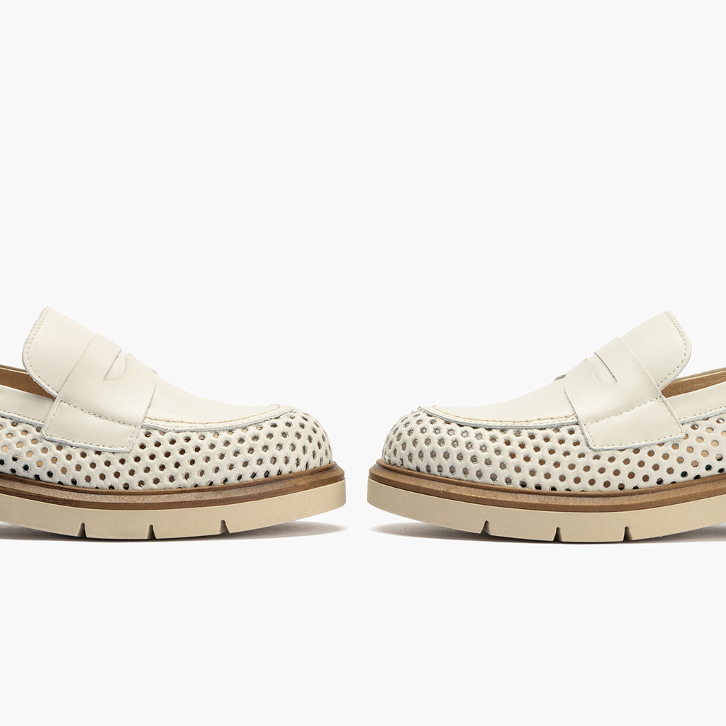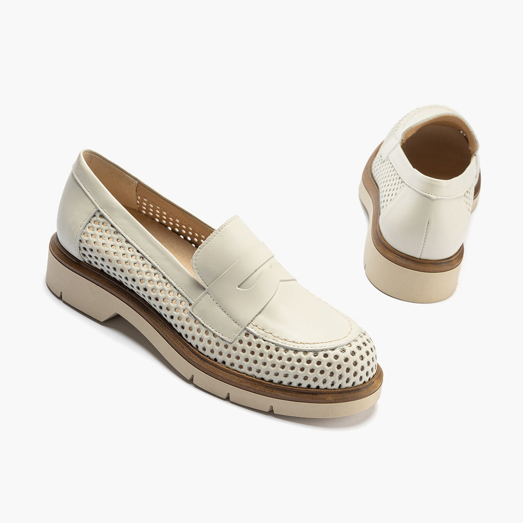 Mocasin oxford con picados mujer en piel napa BLANCO