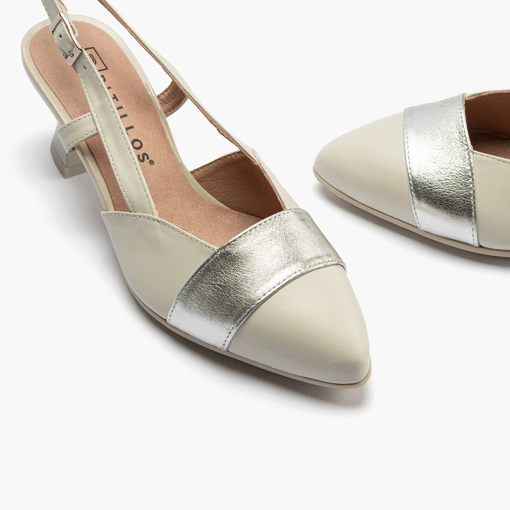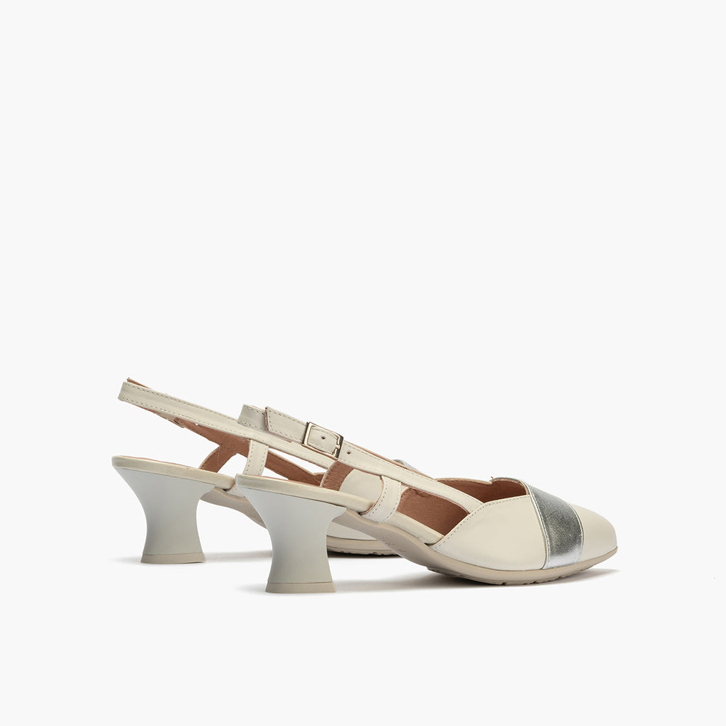 pala con banda y talon abierto mujer con hebilla en piel combinada PLATA