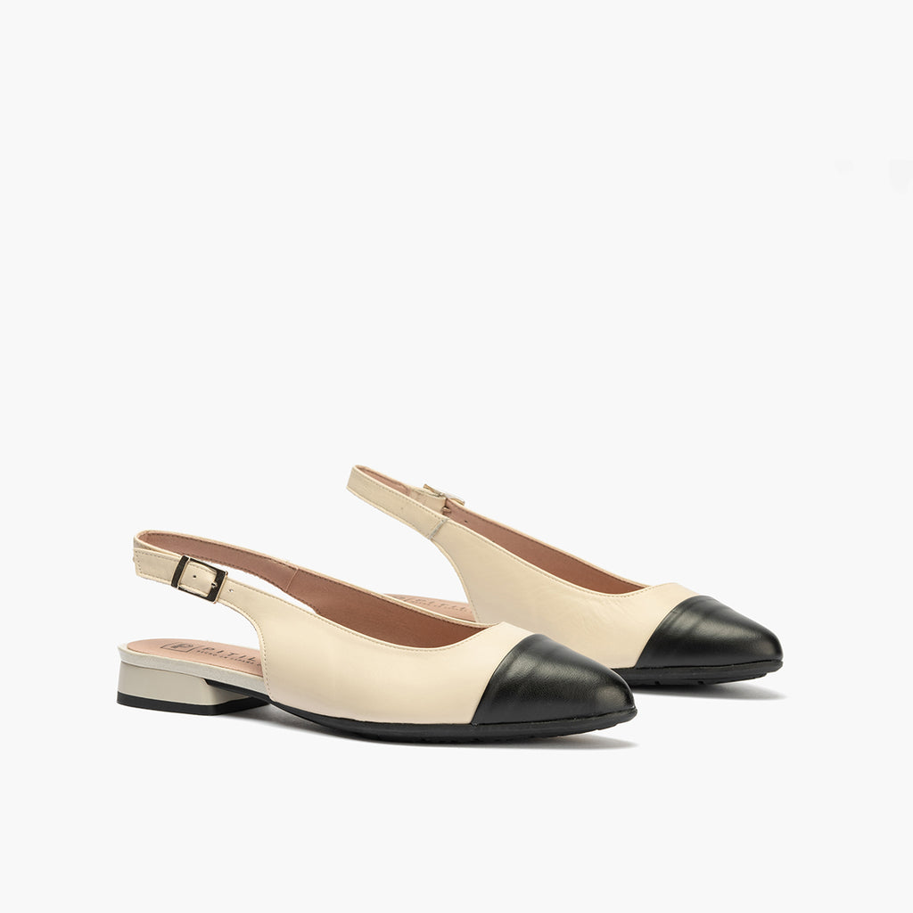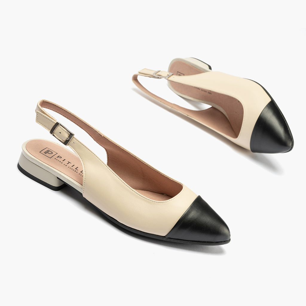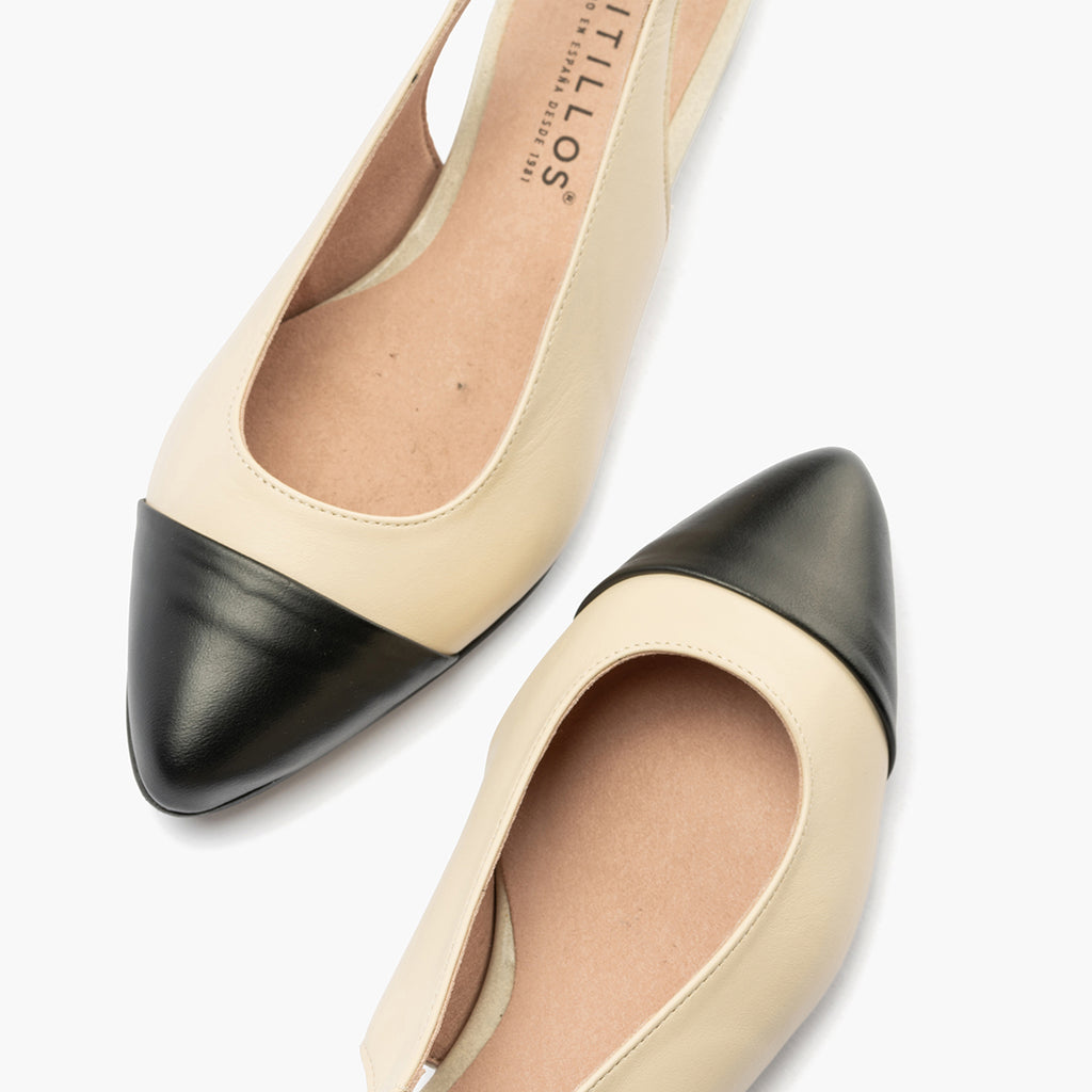 Salon con puntera mujer con hebilla en piel napa CREMA