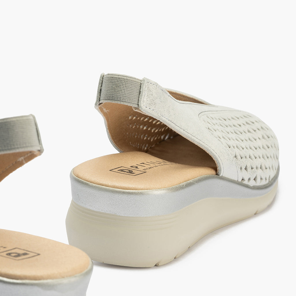Salon de talon abierto mujer con elástico en piel fantasía PLATA