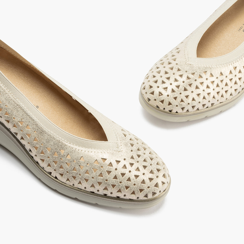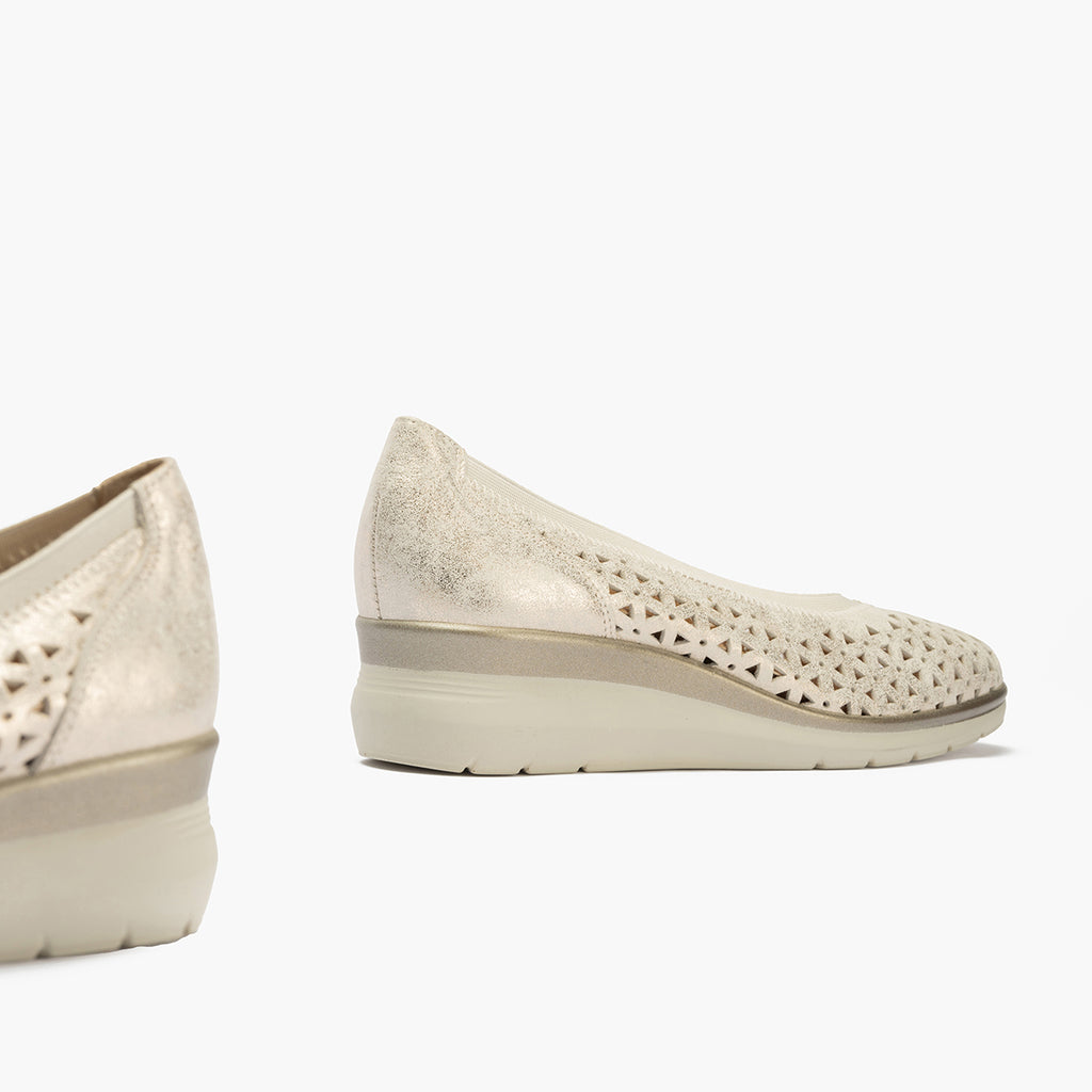 Salon hueco pico mujer con elástico en piel fantasía ORO