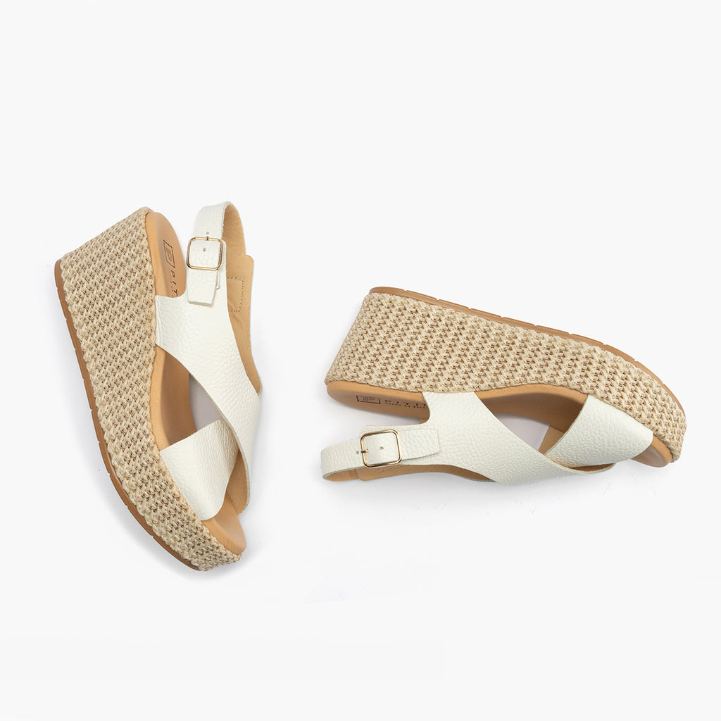 Confeccionada en Piel Laminada para un toque elegante y diferente. La suela de poliuretano garantiza ligereza y resistencia. Incluye plantilla técnica textil para extra-confort y sensación térmica óptima esta primavera/verano. compuesta por fibras transpirables para máximo confort. Altura de cuña: 7 cm.