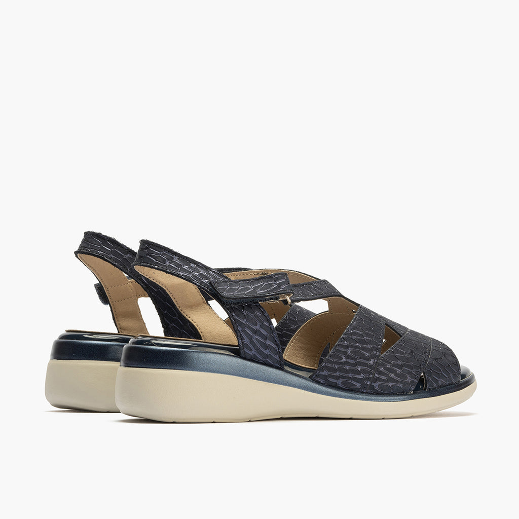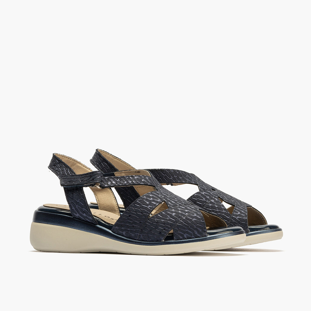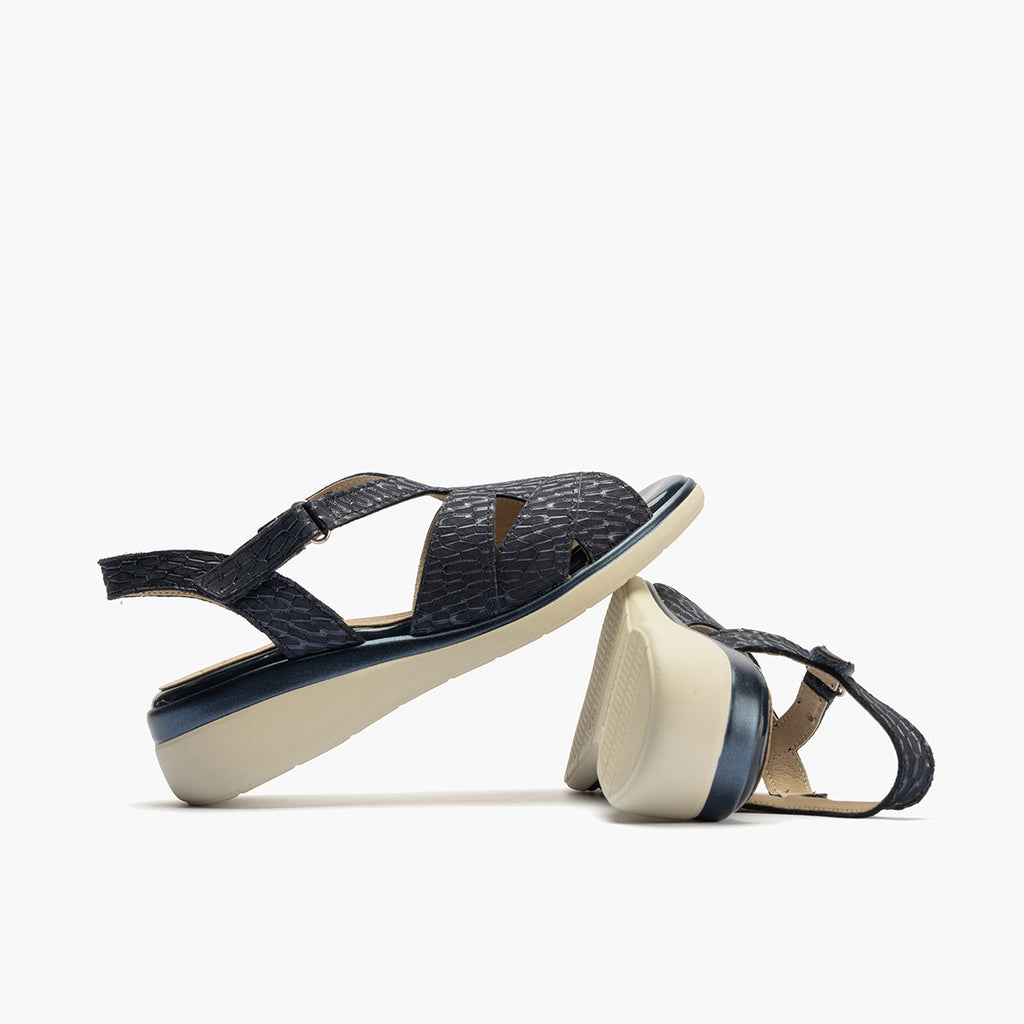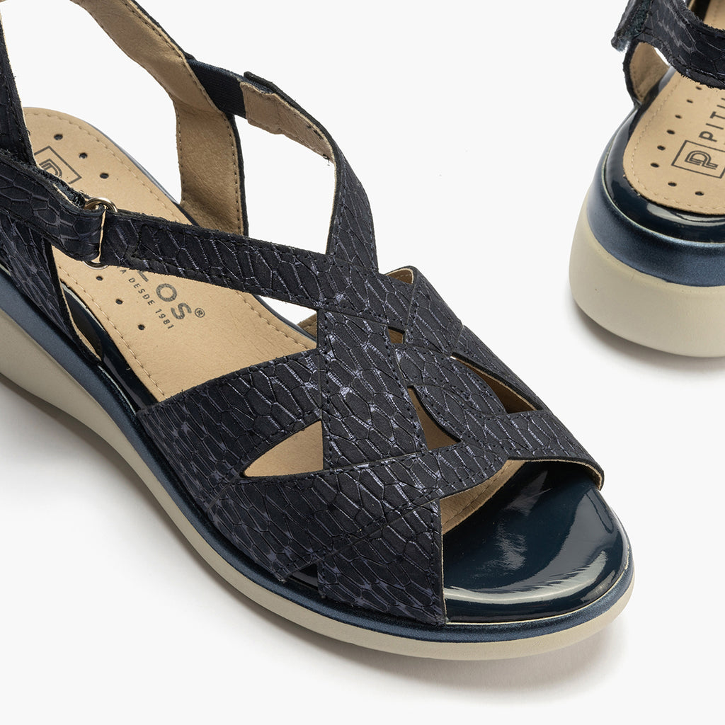 Sandalia asimétrica con velcro en piel grabada fantasía AZUL