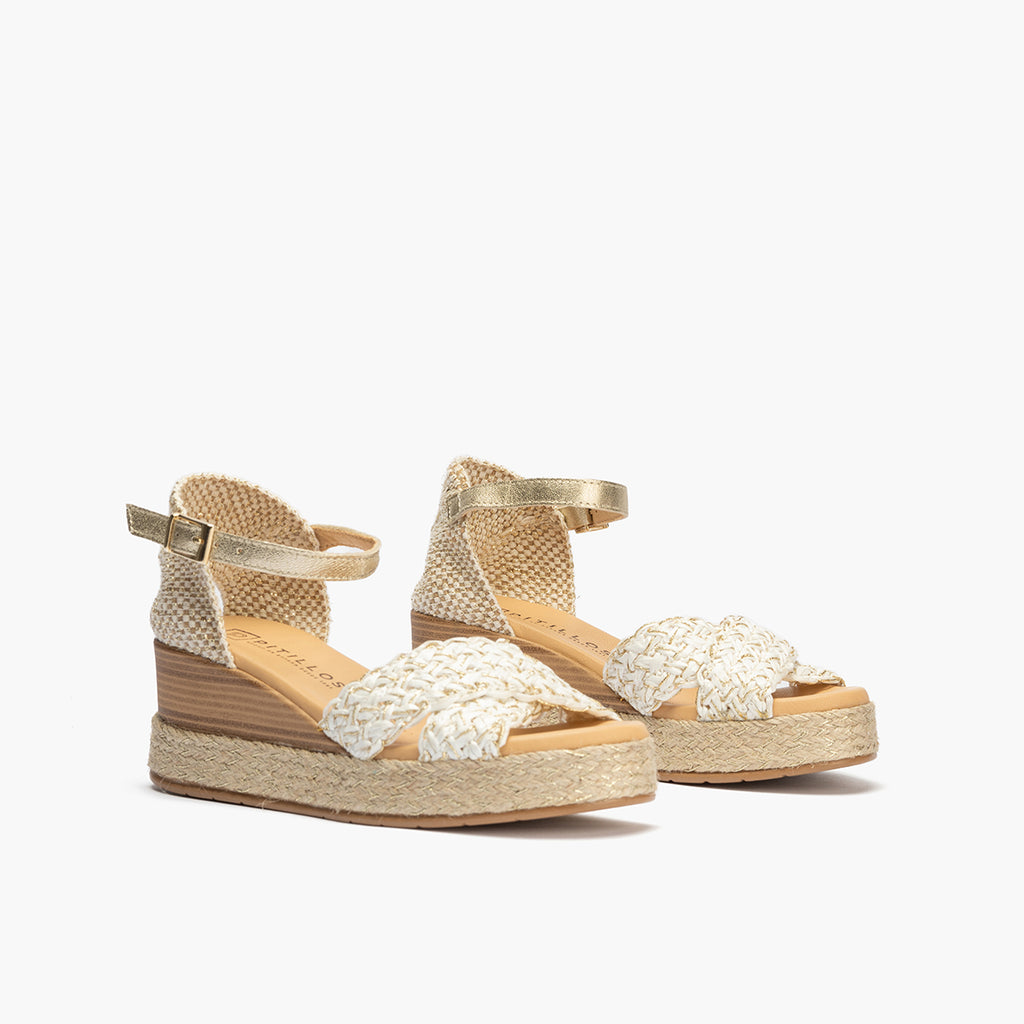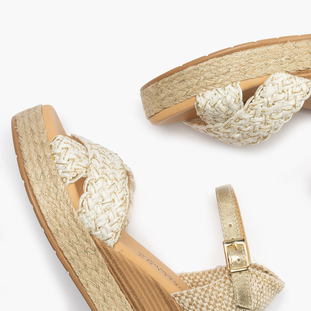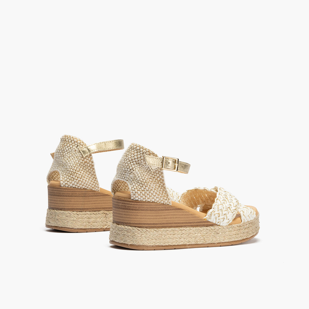 Sandalia bandas cruzadas mujer con hebills en trenzado sintético BLANCO