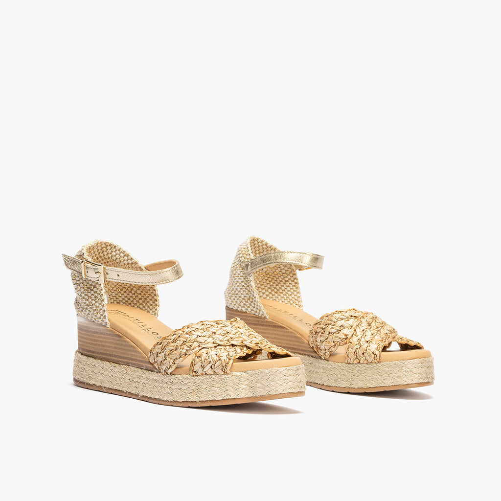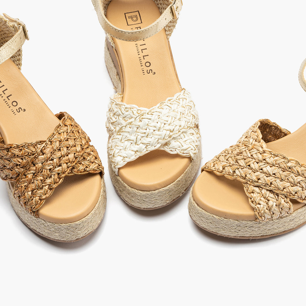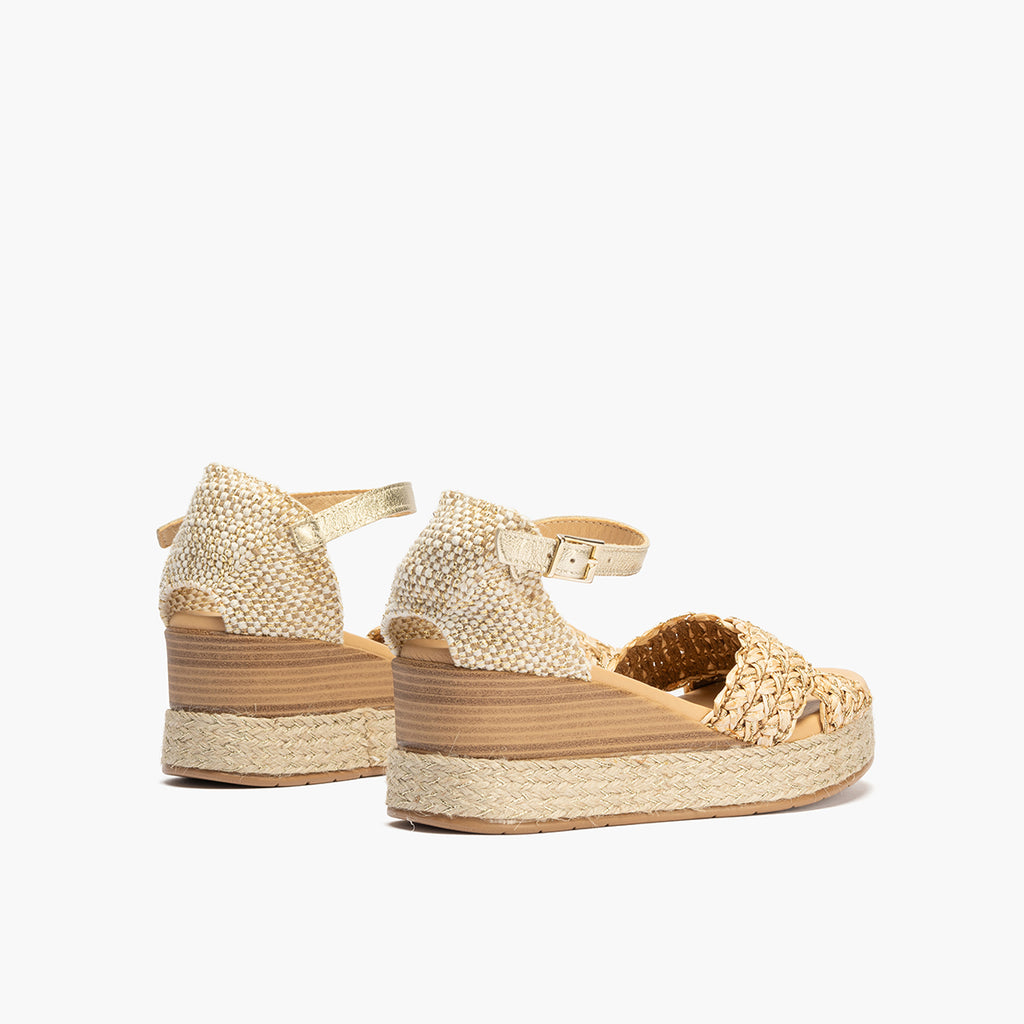 Sandalia bandas cruzadas mujer con hebills en trenzado sintético MARRON CLARO