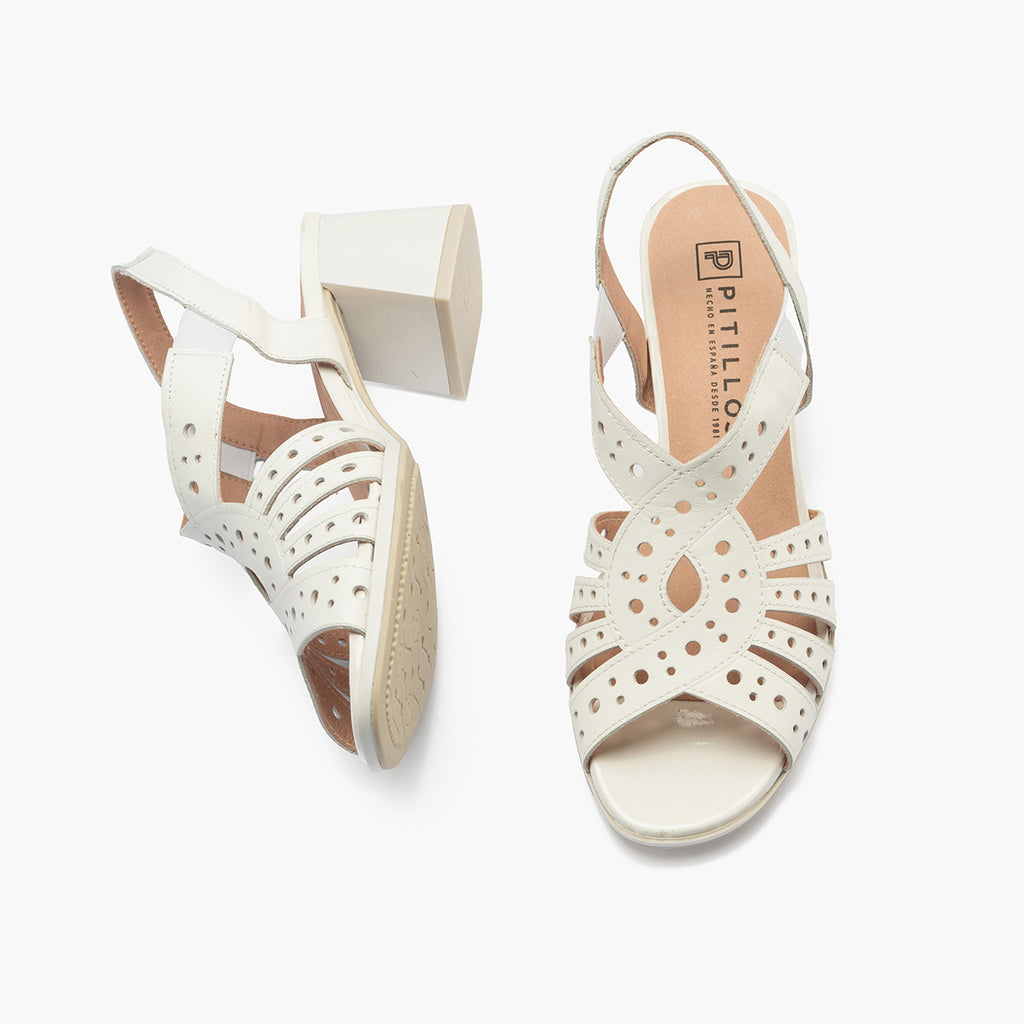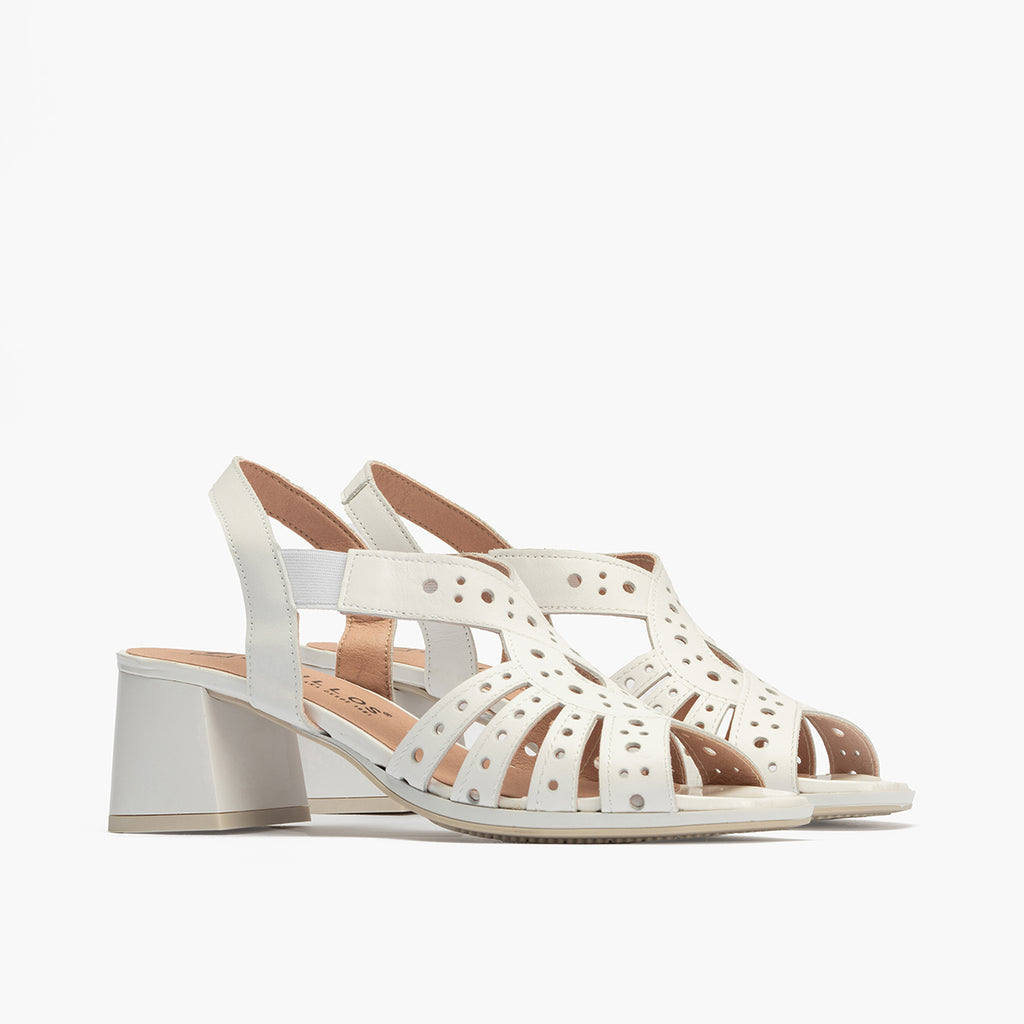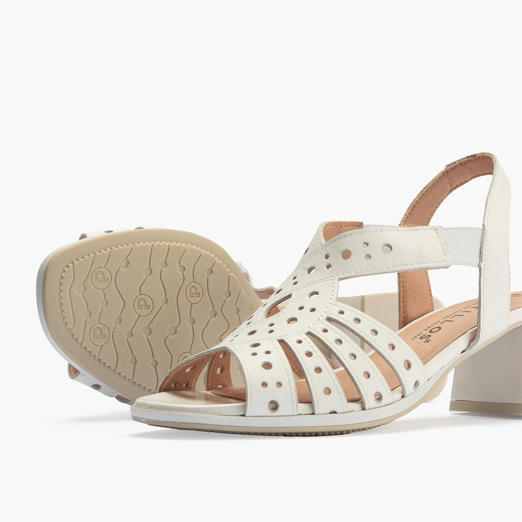 Sandalia con picados mujer con elásticos en piel napa BLANCO