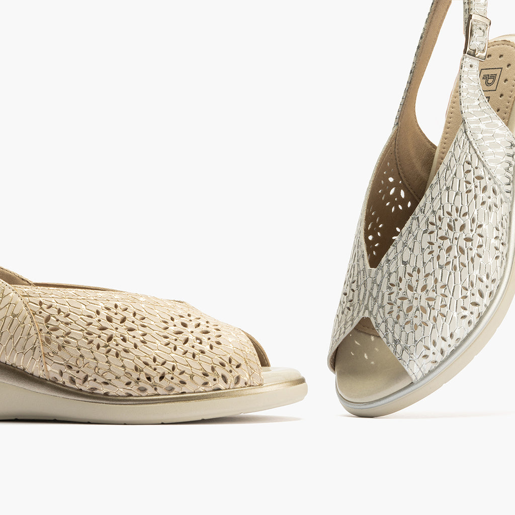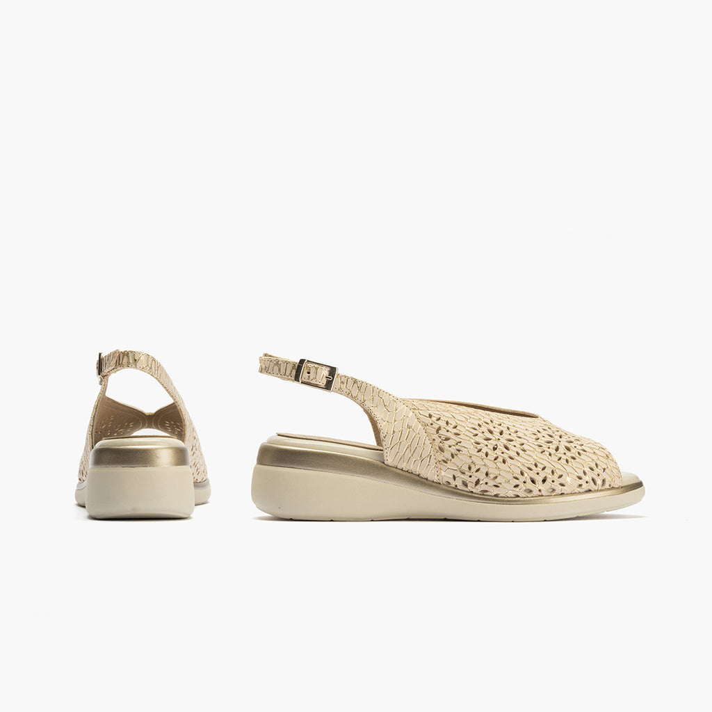 Sandalia con picados mujer con hebilla en piel grabada fantasía ORO