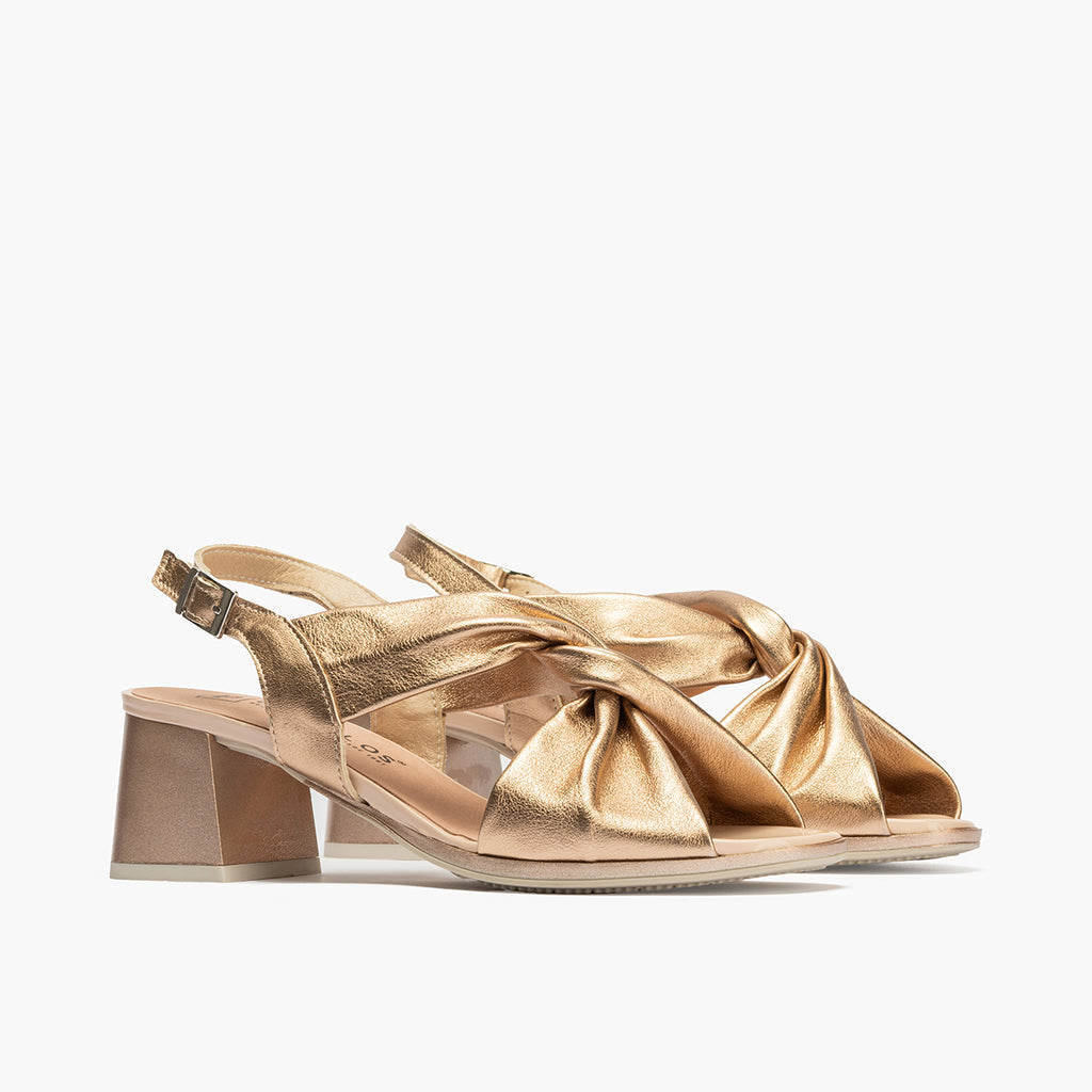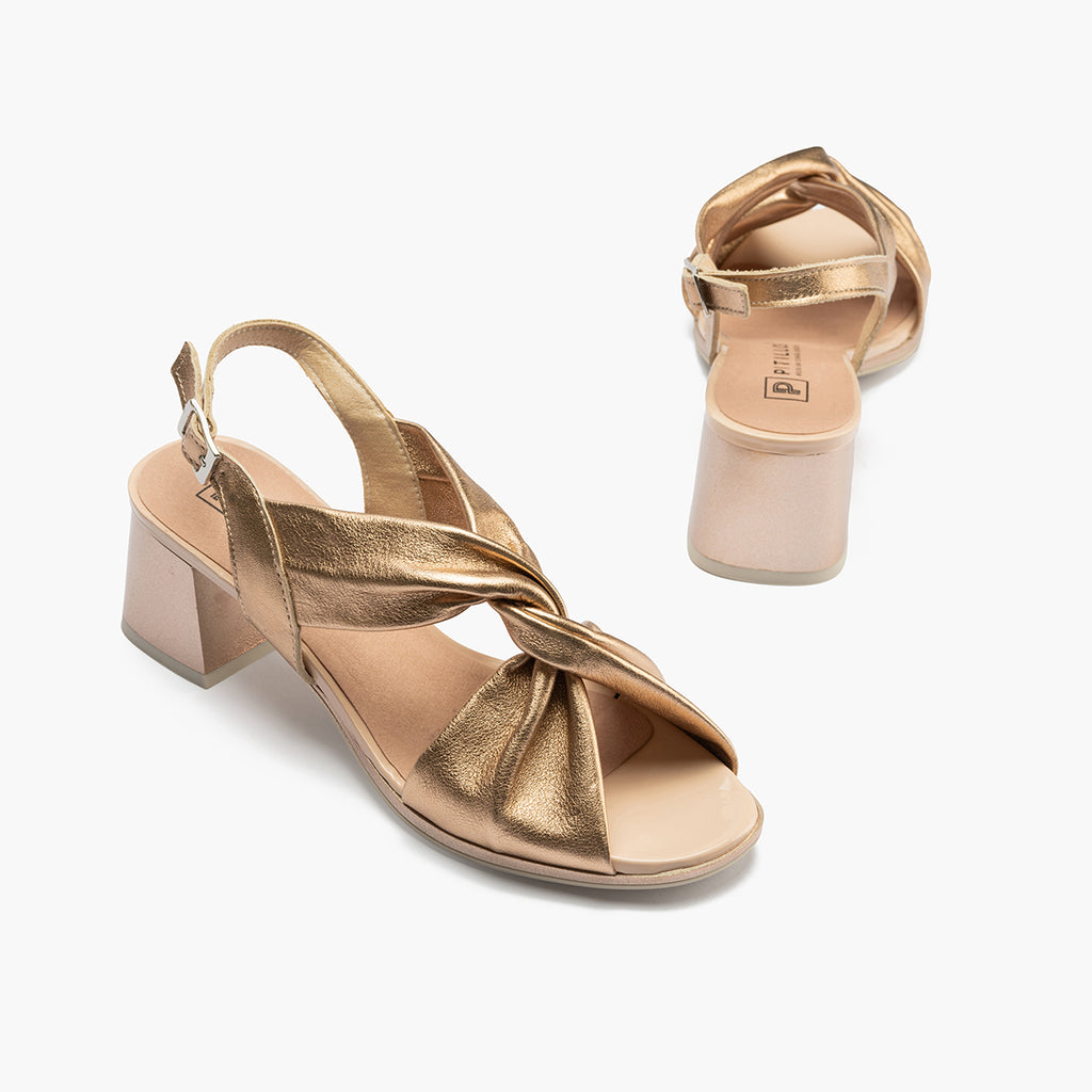 Sandalia con tubulares cruzados mujer con hebilla en piel laminado ROSA